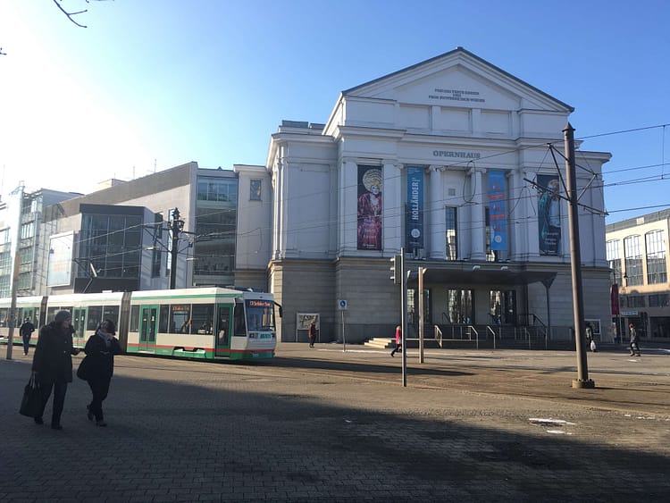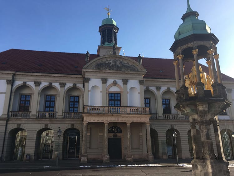 Sandwiched between the newly renovated campus of Otto-von-Guericke University and the century-old opera house, Universitätsplatz is bisected by a quiet tram route. As you cycle south along the tram tracks, you’ll eventually get into the old part of the old city where the Rathaus and the traditional town market is.