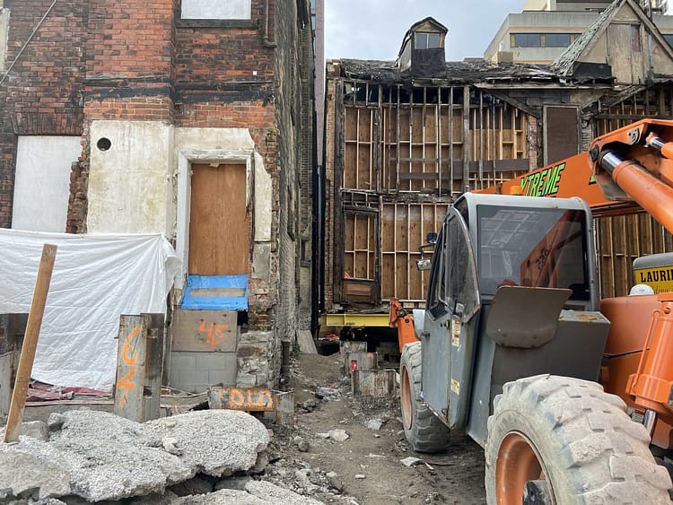Burke’s site is complicated. There used to be four designated buildings on the land bordered by Sherbourne and Howard streets and Redrocket Lane. The neglected and demolished James Chalmers Building used to be part of the site.