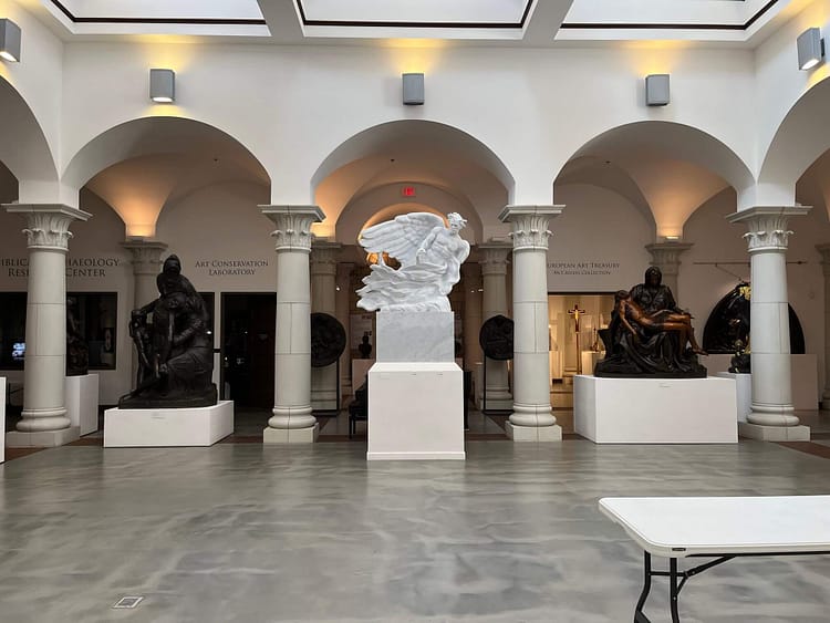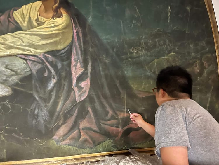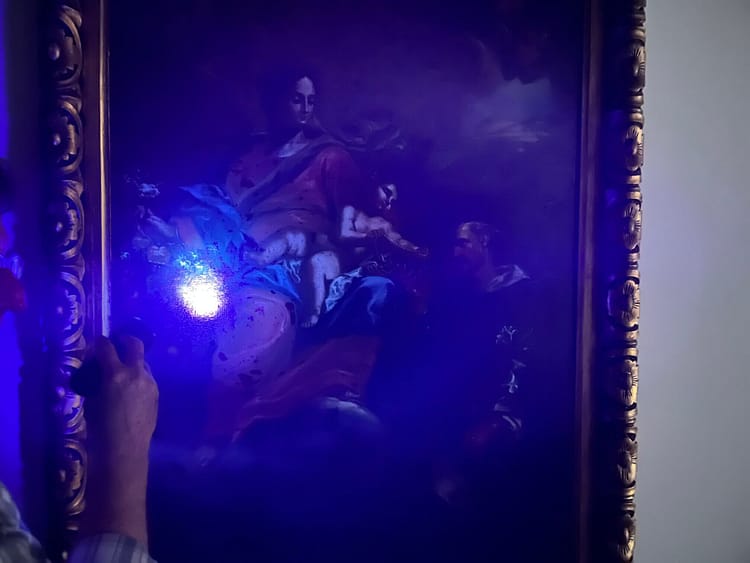 I was permitted to touch the scars on a marble statue of Jesus and clean a painting of him using my spit on a cotton swab. When the museum closed at five, Scott turned the lights off and showed me how to spot repair work on 400-year-old artwork with a black light and spot glue and lead adhesive on restored stained glass windows.