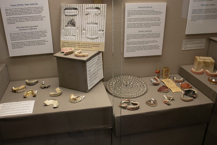 It has a lot of exhibits on fake medications with heroin and cocaine and radium in it and early versions of modern medical equipment. Old x-ray machines, dentures made from animal bone, foot-operated dental drills, and simple casts. I wish they would make modern connections to old technology such as linking snake oil to homeopathy and connecting amputation with advanced prosthetics.