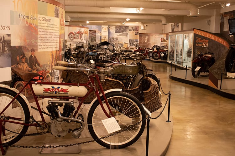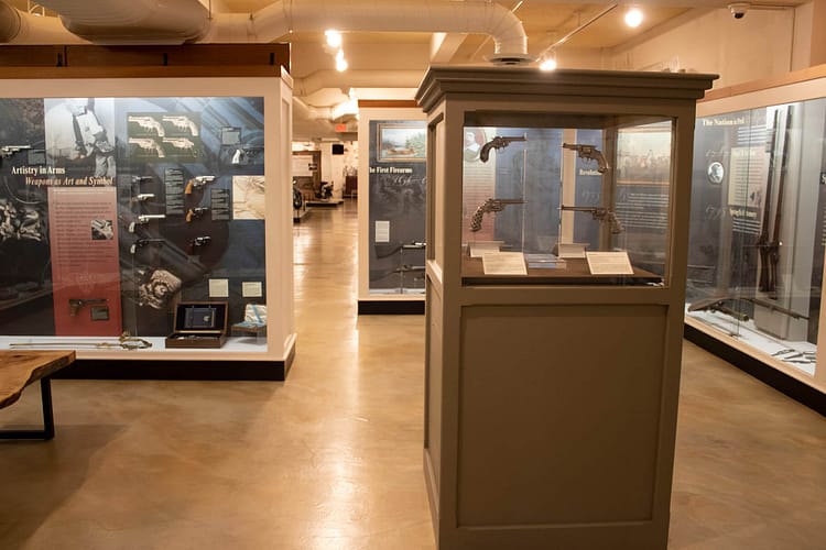 The back of the first floor had glass cases full of items manufactured in the Springfield Valley region. Violins, motorcycles, games, and safety glass just to name a few. Upstairs, dozens of Indian motorcycles reminded me of the Harley Davidson Museum in Milwaukee. The other half of the second floor was more or less a municipal history gallery featuring old storefronts and a weapons gallery sponsored by Smith & Wesson.