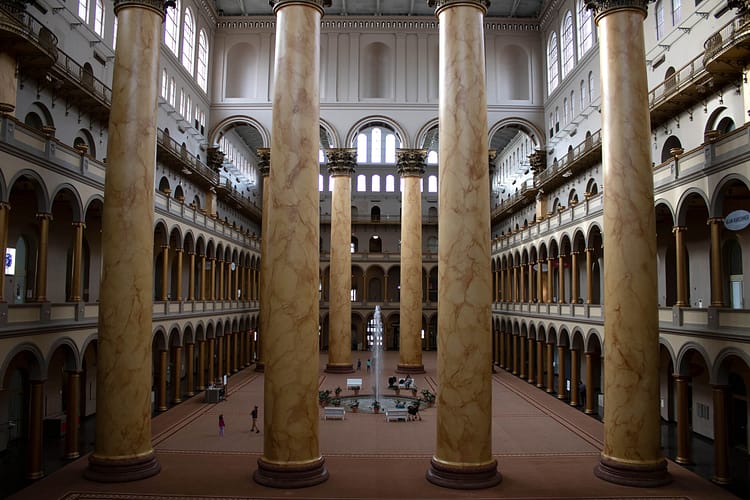 The structure of the museum itself is an architectural wonder. Eight massive corinthian columns hold up the roof of an airy atrium. The building is mostly empty space with a ribbon of rooms hanging around it. It feels like the Italian Renaissance was lodging inside a Queen Anne Revival building. It had been used for the annual presidential Christmas show for three decades, the host of many presidential balls, and a music hall at times. I think the museum is just the keep the lights on.