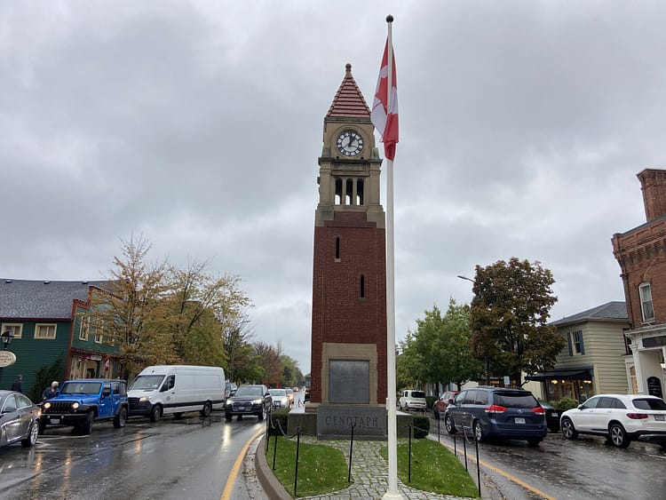 Like many other Ontario cities, Niagara-on-the-Lake has a cenotaph downtown commemorating fallen soldiers. Unlike other Ontario cities, this cenotaph is a functional clock tower. The memorial is in the town’s historic district, which was built by Loyalist refugees in 1778. The town was the first capital of Upper Canada from 1791 to 1796. The town was destroyed in the War of 1812, so the residents rebuilt it in British classical style. It is among the best-preserved historic sites in the country with architecture from the first half of the nineteenth century.