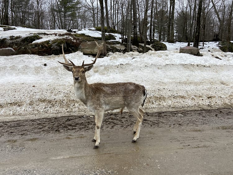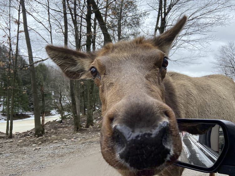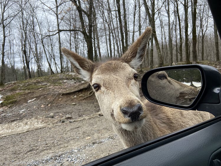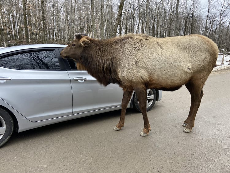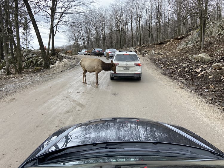 About midway between Ottawa and Montreal, but more on the road towards Mont Tremblant, Parc Omega is the largest safari park for hundreds of kilometres. It’s near the Ottawa River that demarcates the border of Quebec and Ontario, so the location clearly panders to guests from both provinces.