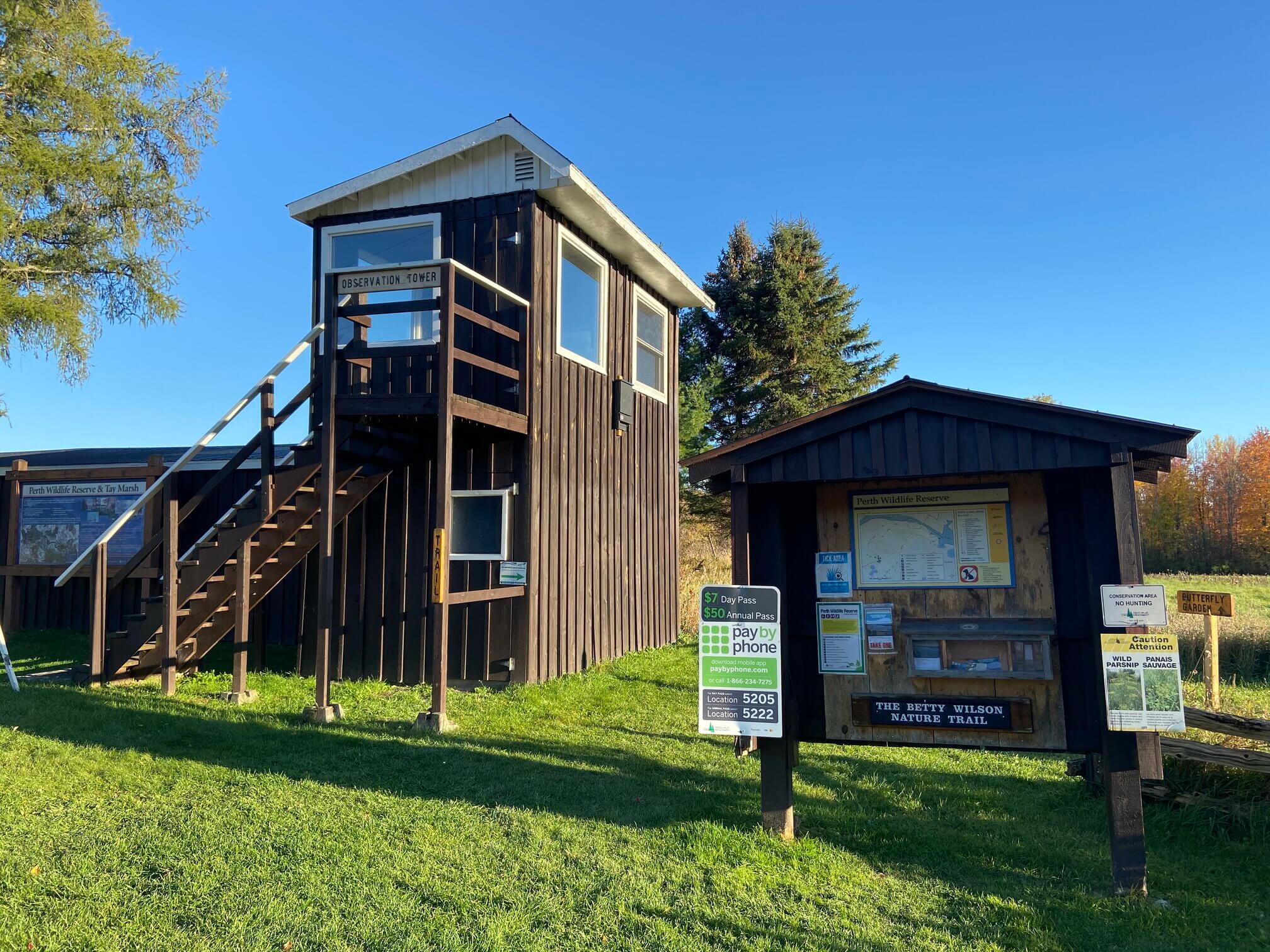 The nearby Perth Wildlife Reserve has an easy three-kilometre long trail that loops around Tay March, a wildlife conservation reserve area. In summer, the butterfly garden will actually have butterflies in it. There are two lookout points along the trail; one at the entrance next to the butterfly garden and one midway through the park.