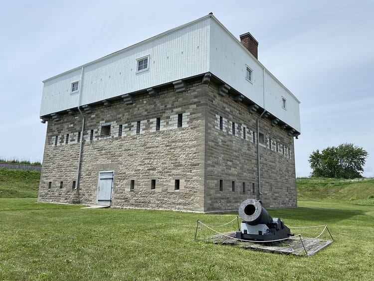 Visitors go to Prescott not for its 19th century homes, but for its 19th century blockhouse in Fort Wellington National Historic Site. The fort was built in 1812 to slow the American advance but was abandoned after the War of 1812. The blockhouse was rebuilt in 1838 during the rebellion of 1837.