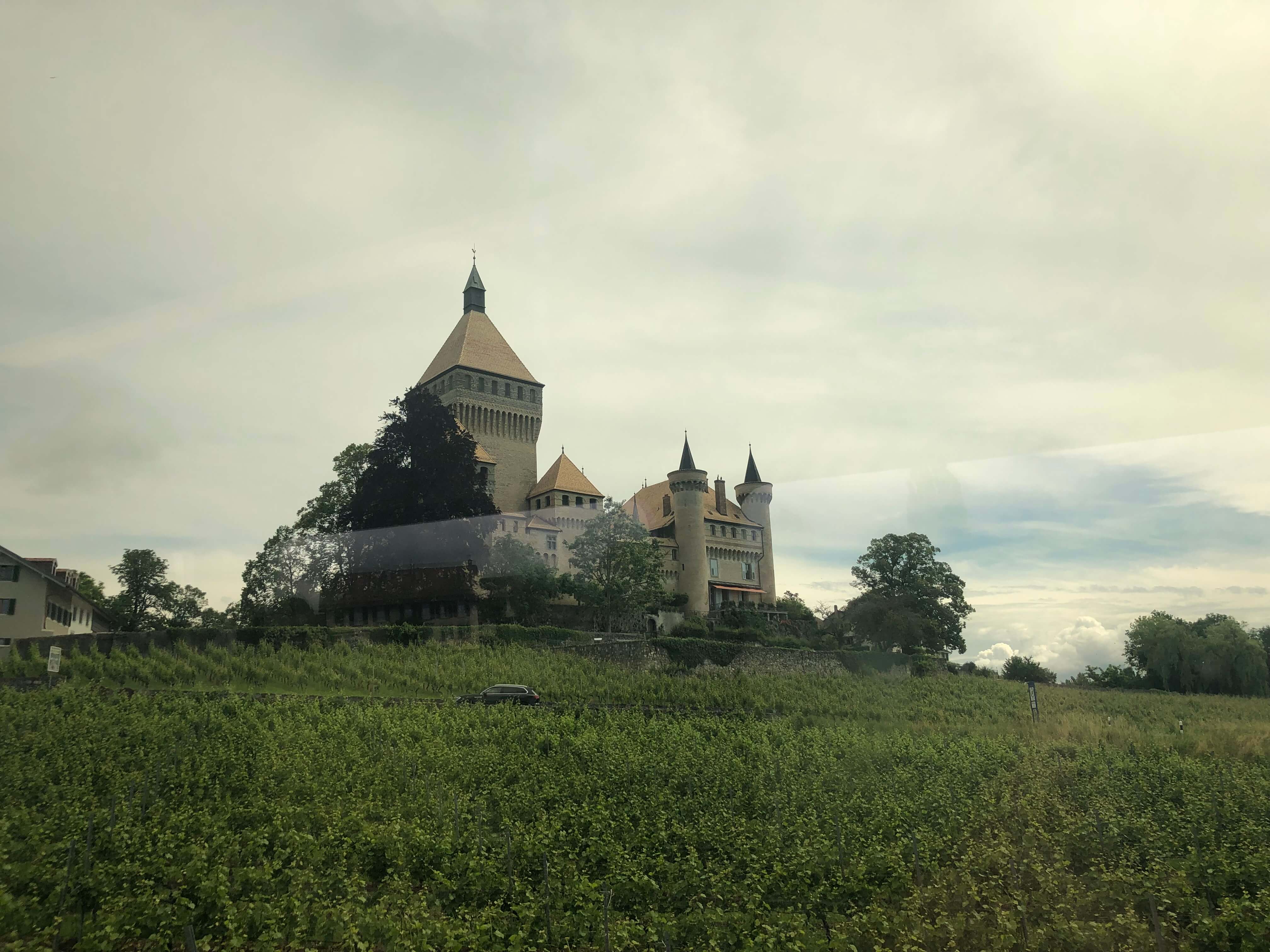 The R122 train takes you from the coast of Lake Geneva all the way up to 400m above sea level in the rolling hills of Vaud. It passes by two castles, one of which is right next to the tracks. Although the Chardonnay Château isn’t in the valley of Chardonnay, it is still a beautiful location with a commanding view of the lake below.