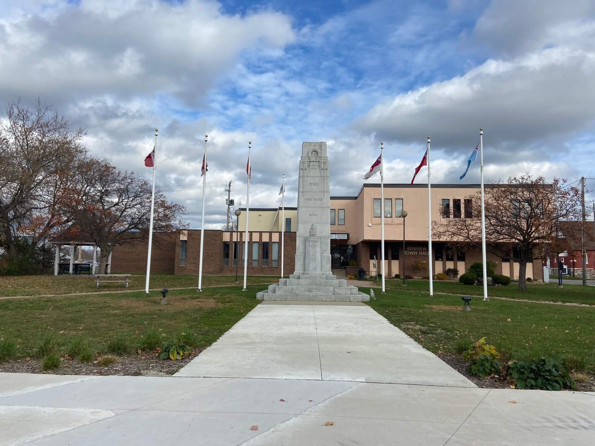 The plaque at the town hall says Renfrew was founded based on a lumbering industry from 1830. By 1848, it sold lots in the village for settlers and a post office and church were opened by 1851. Among the many industries that opened in the area, one of the was a gristmill.