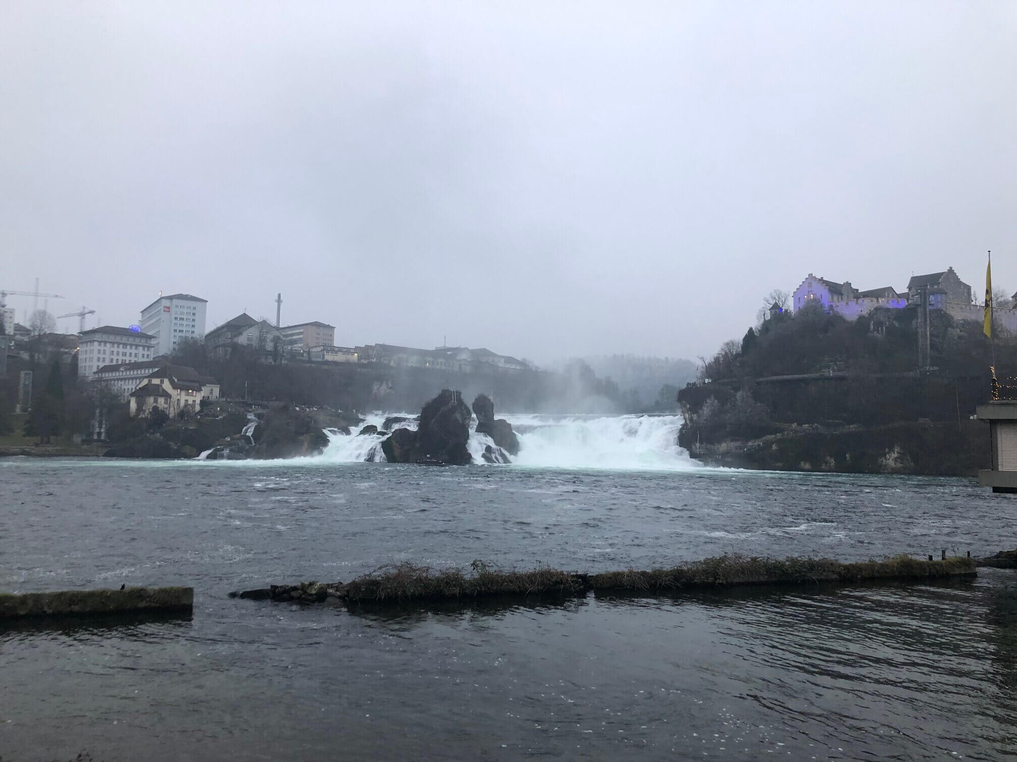 The Rheinfall is Europe’s most powerful waterfall. It sits in the middle of the River Rhine between the Swiss cantons of Zürich and Schaffhausen. The town of Neuhausen is split by the Rhine and there are three railway stations bearing the name of the town. It’ll be a bit of a walk if you get to the wrong station.