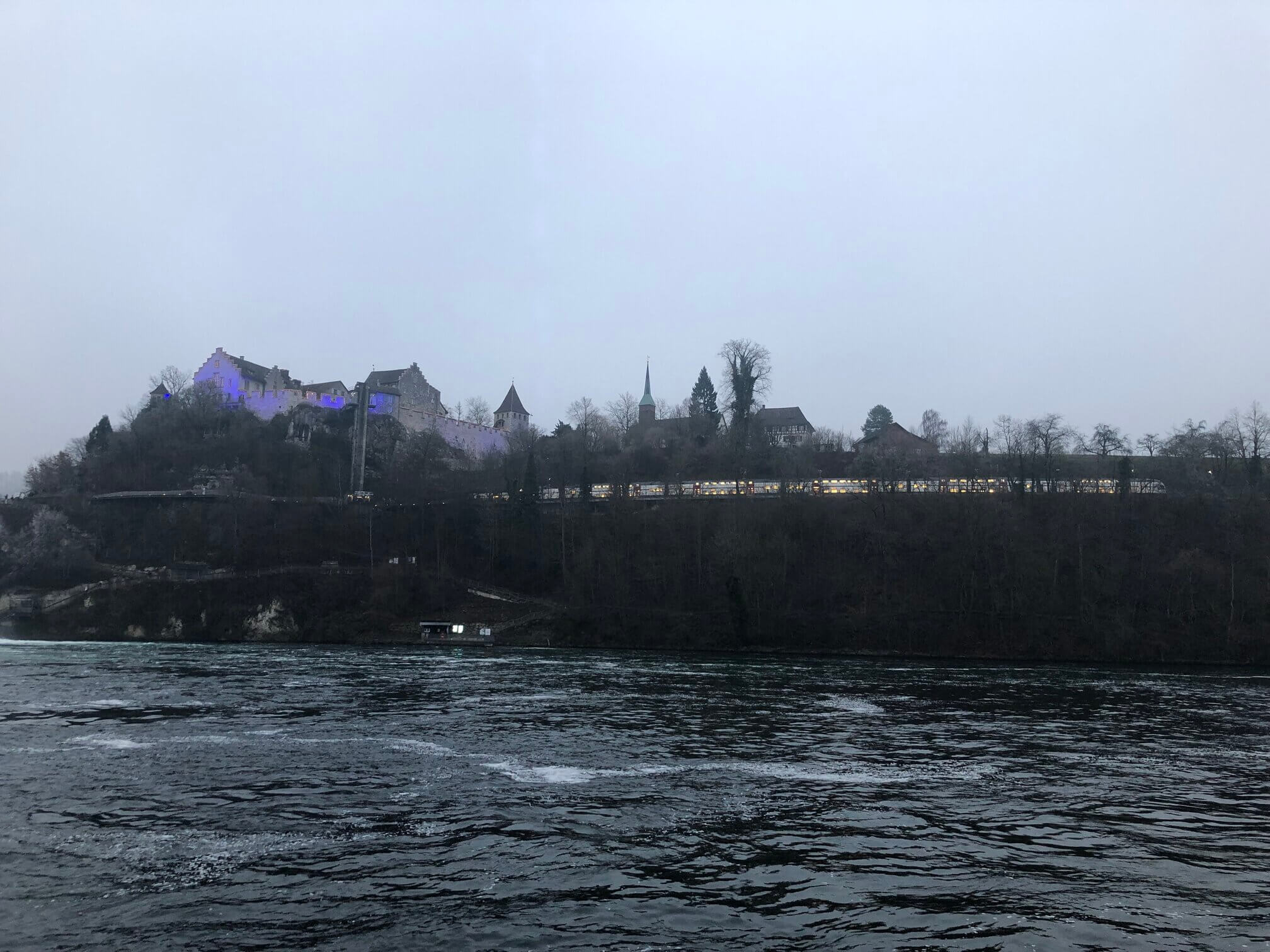 There’s a little castle on the Zürich side of the falls, accessible by a pedestrian bridge from the Schaffhausen side. There’s a restaurant and a beautiful patio serving grossly overpriced food to tourists. Even the ice cream stand nearby is eager to rip people off.