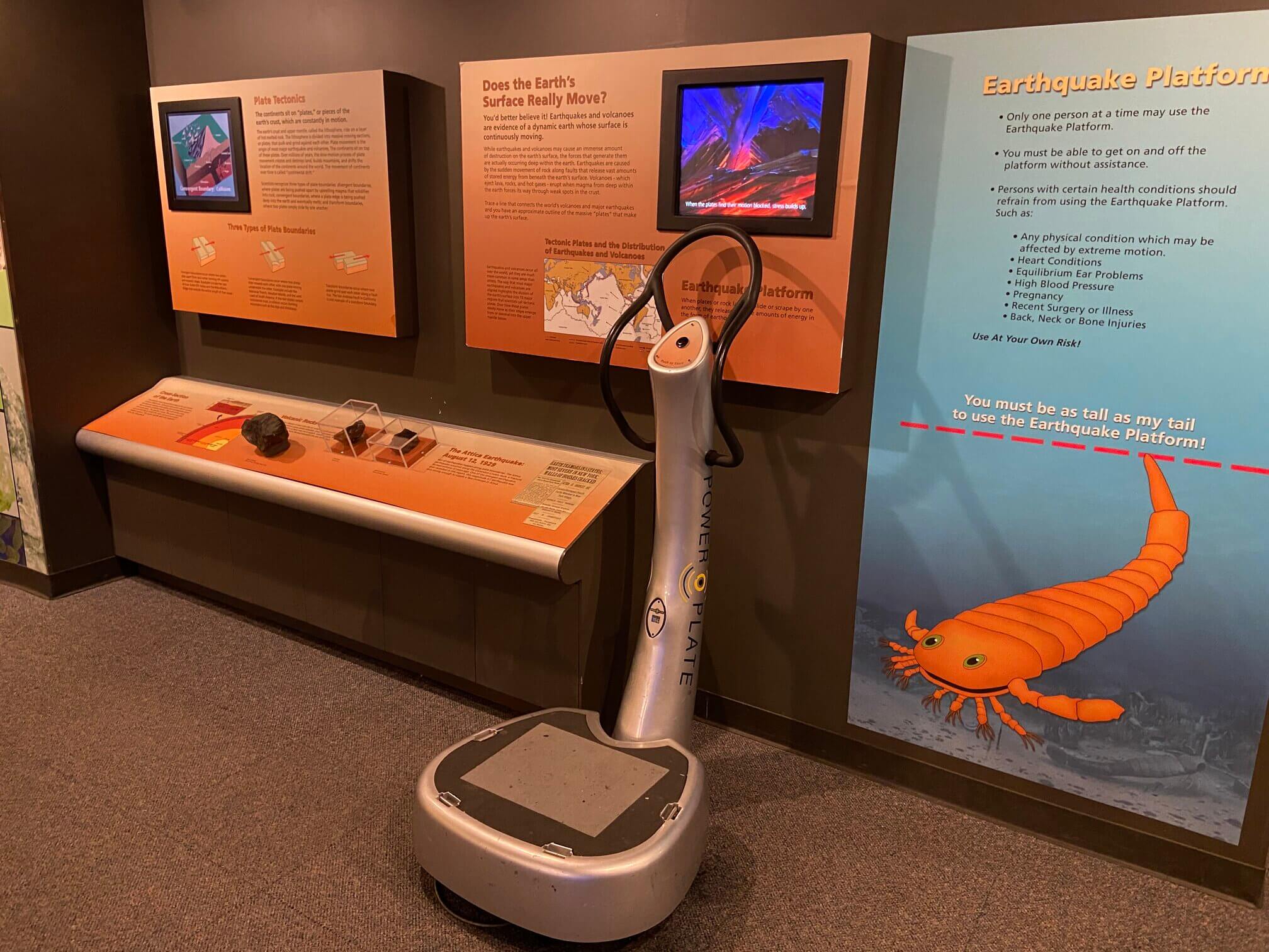 The hands-on science exhibits are aimed at children, but adults can still learn so much from them. Among many excellent exhibits, there is an earthquake simulator with video screen showing what happens during an earthquake, a vortex machine that makes a six-foot tall tornado inside a tube of water, a cloud maker that blows vapour out of tiny holes, and a wind fan that lets visitors feel what strong storms are like.