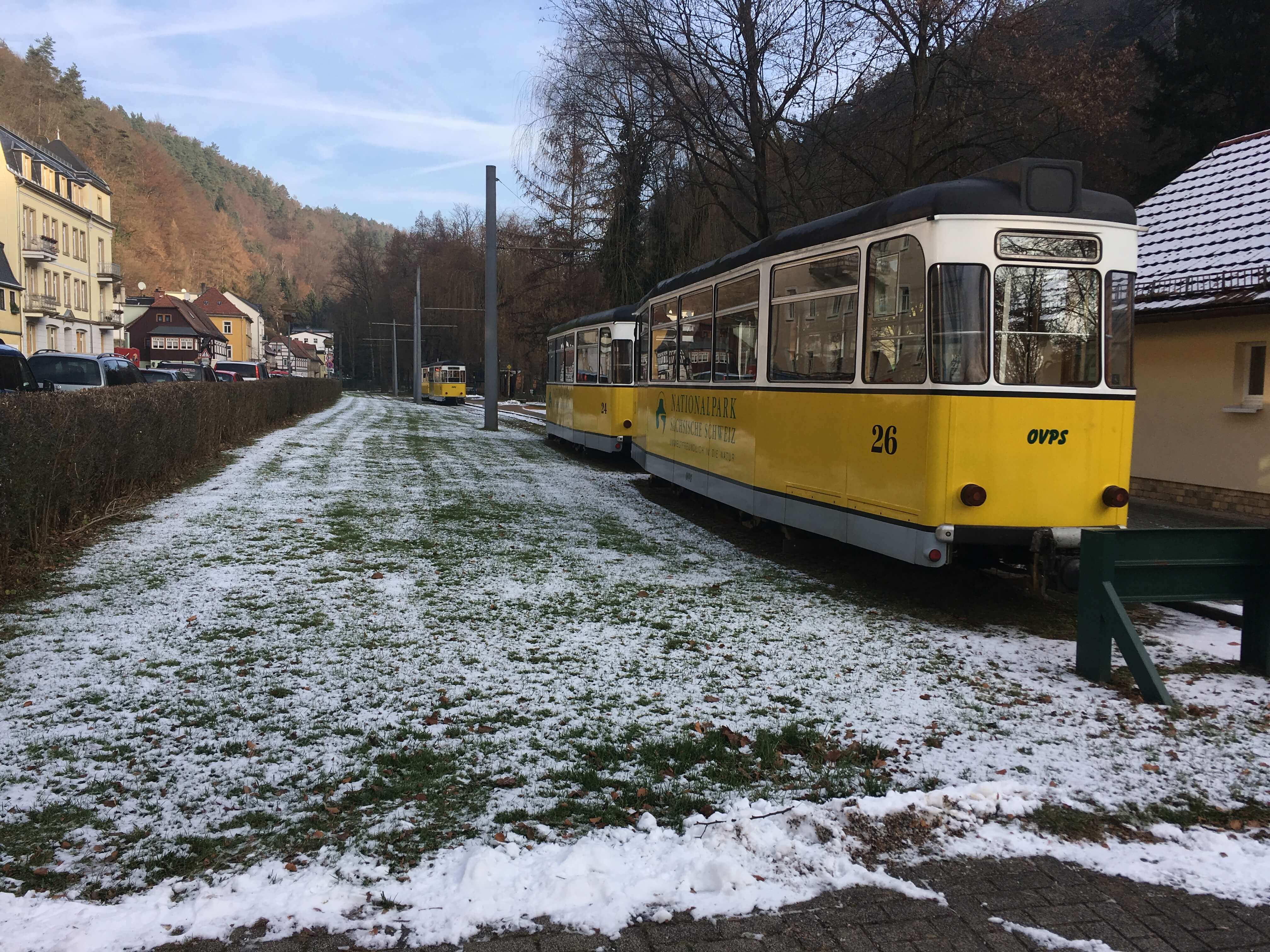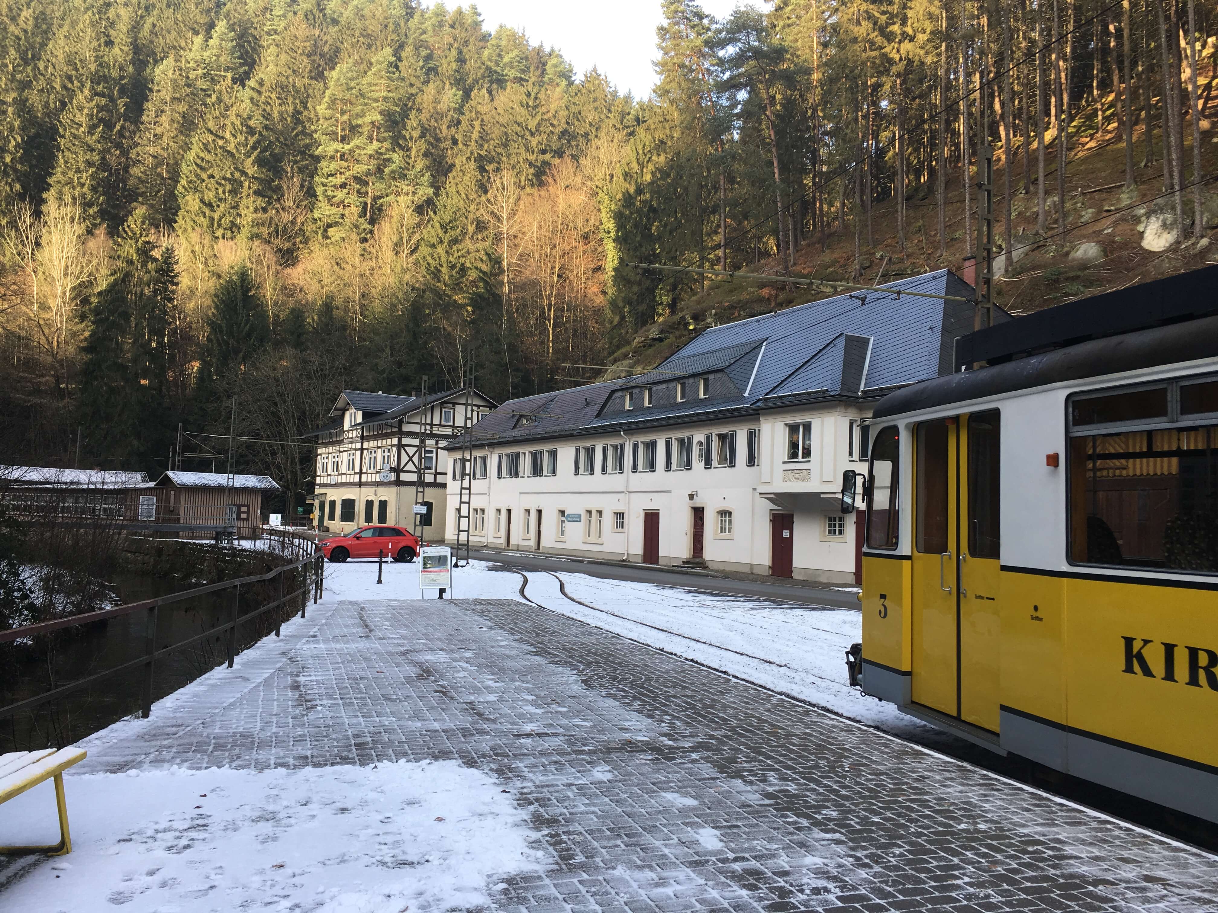 I chose to take the famous Kirnitztalbahn that offers stunning scenery of frozen waterfalls and snow covered pine forests in winter. The tramway is mainly composed of antique tram cars from the East German area and the Weimar Republic with some cars from as early as the 1920’s. Though old, they still serve tourists faithfully.