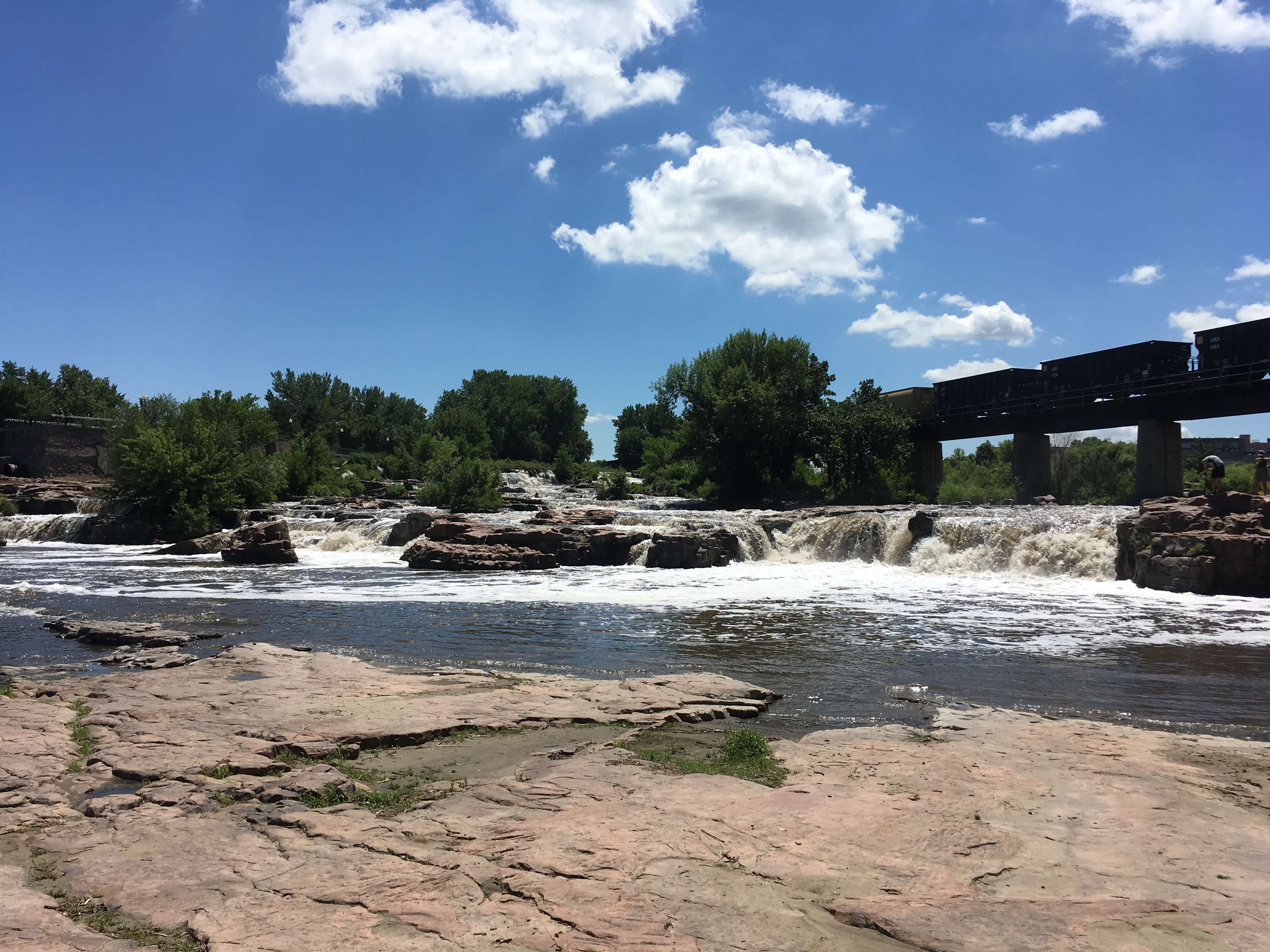 Flat now as it was a hundred years ago, the town’s low density hasn’t changed for decades. This makes Sioux Falls friendly for the wallet and calm to drive in. Famous for the falls on the Big Sioux River that gives the town it’s name, parking is free at the falls park and like Lake Itasca, the river is just a couple of feet away.