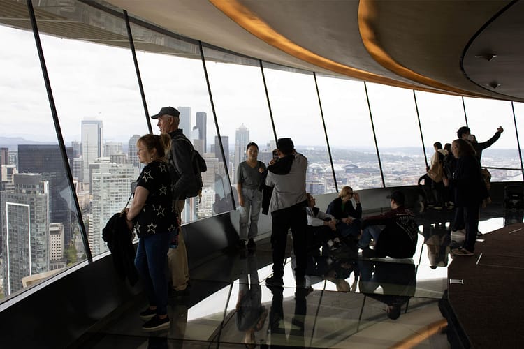 It was originally built for the 1962 World’s Fair. A two-stop monorail line was also built to ferry passengers from downtown Seattle to the fairgrounds. The Chihuly Garden and Glass is nearby and just a short walk from the base of the tower.