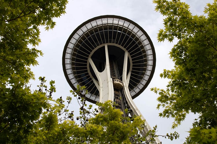 The Space Needle in Seattle is tall, but doesn’t reach anywhere near space. Its exterior style is typical of 1960’s futurism with an enthusiasm for human progress. The observation tower is 184 meters tall, but the highest floor only stands at 158 meters.