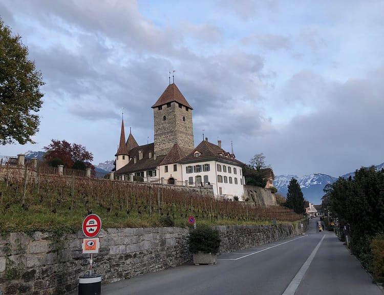 The best way to reach Spiez is by bus 1 from Thun, remember to sit on the left so you get a great view of the Bernese mountains around the Thunersee. When you reach Thun, you’ll be able to see the whole town from the bus stop at the train station as everything is downhill from there.