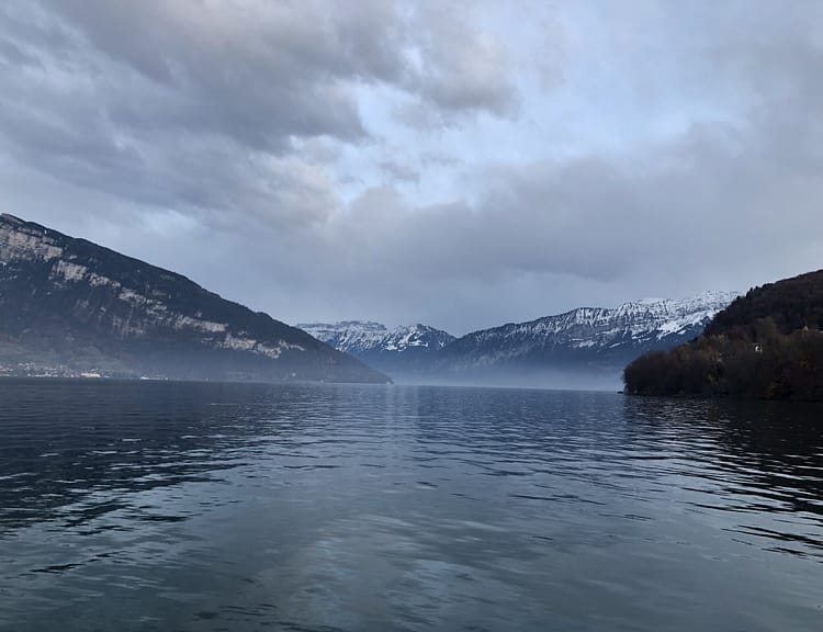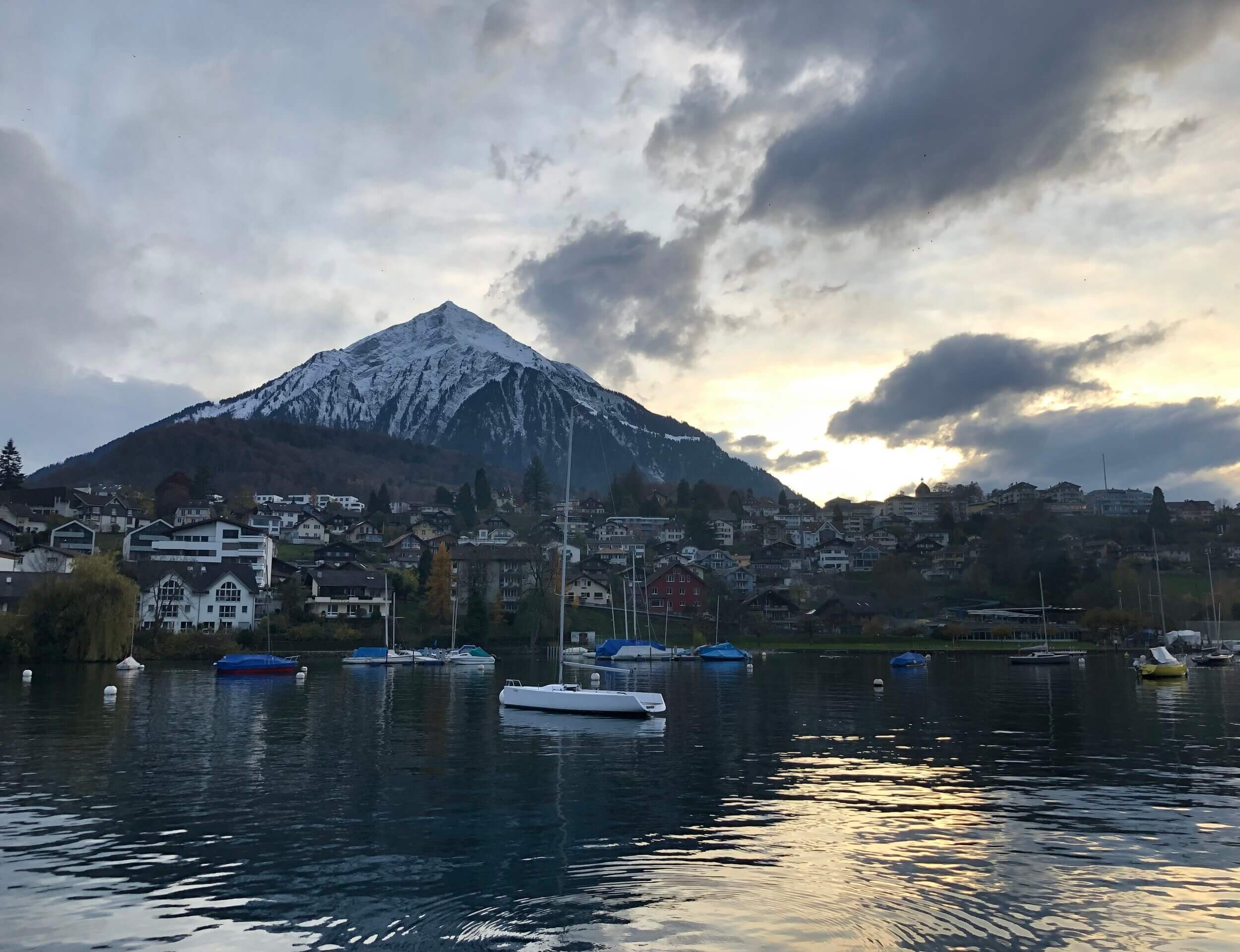 The gradient is rather mild as the road loops around to the bottom. The Thun castle right by the lake is surrounded by restaurants and hotels and is frequented by Asian tour groups as a scenic destination. To enjoy the lake even more, I’d suggest taking one of the two daily ferries that go across the whole lake.