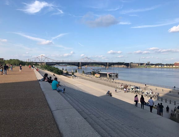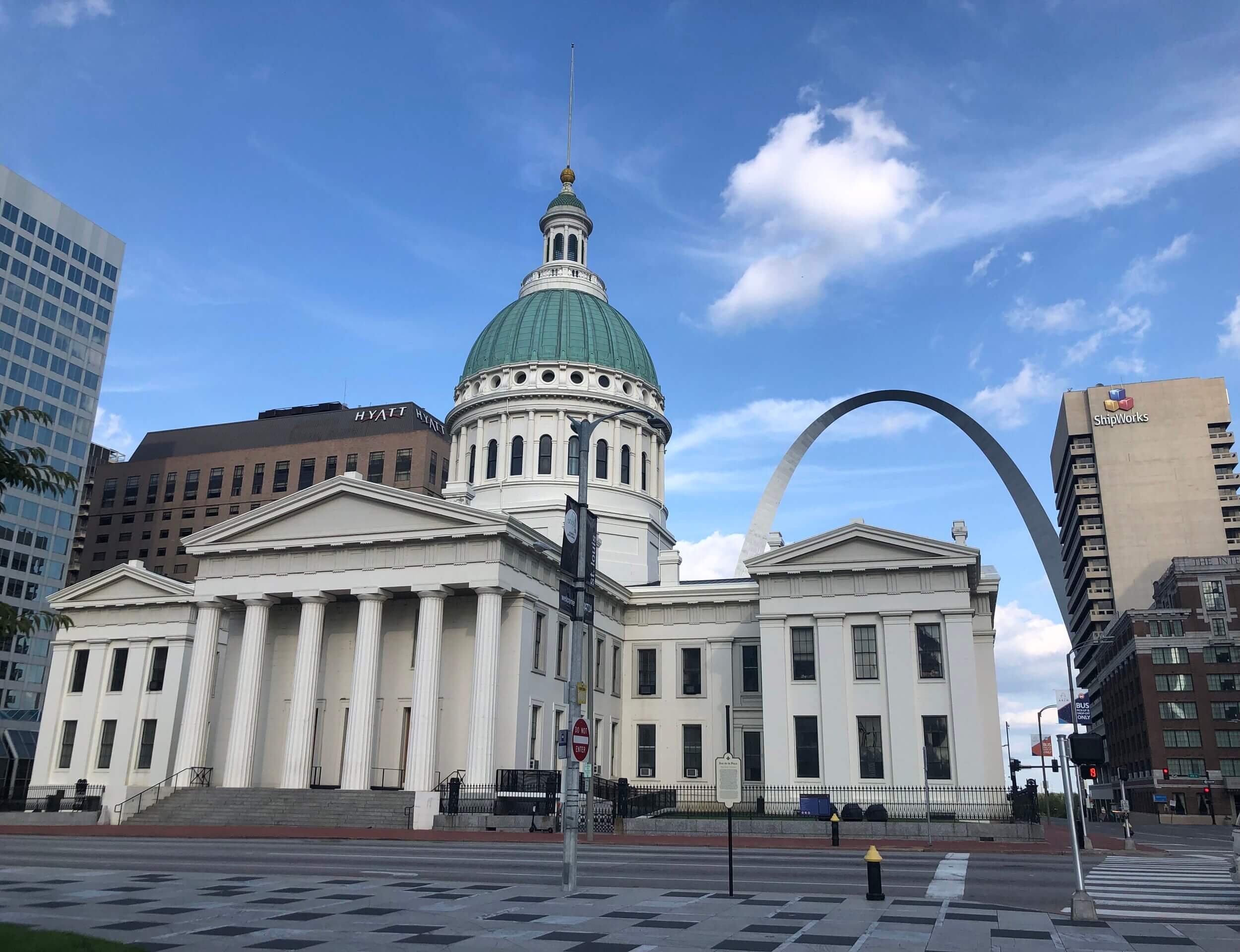 Just behind the Gateway Arch is the Old Courthouse flanked by modern skyscrapers left and right. As you travel further west away from the Mississippi, the old Union Station building that resembles a castle comes into sight. A little further west is Forest Park where the 1904 World’s Fair was held.
