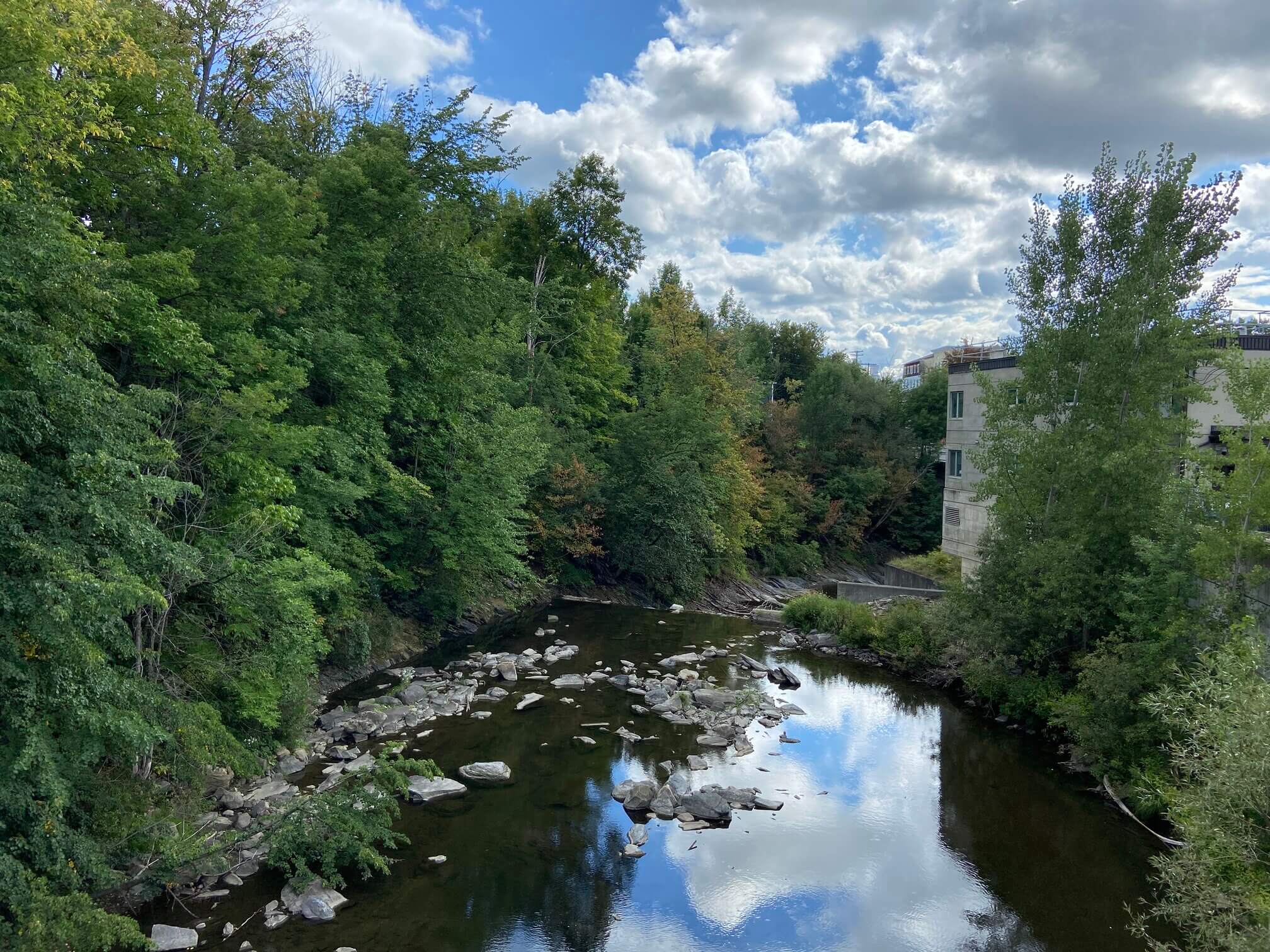 Stanstead is right on the border with Vermont, an American state. The community spills across the two countries and is called Derby Line on the US side. Its most famous sight is a public library purposefully built half on the Canadian side and half on the US side.