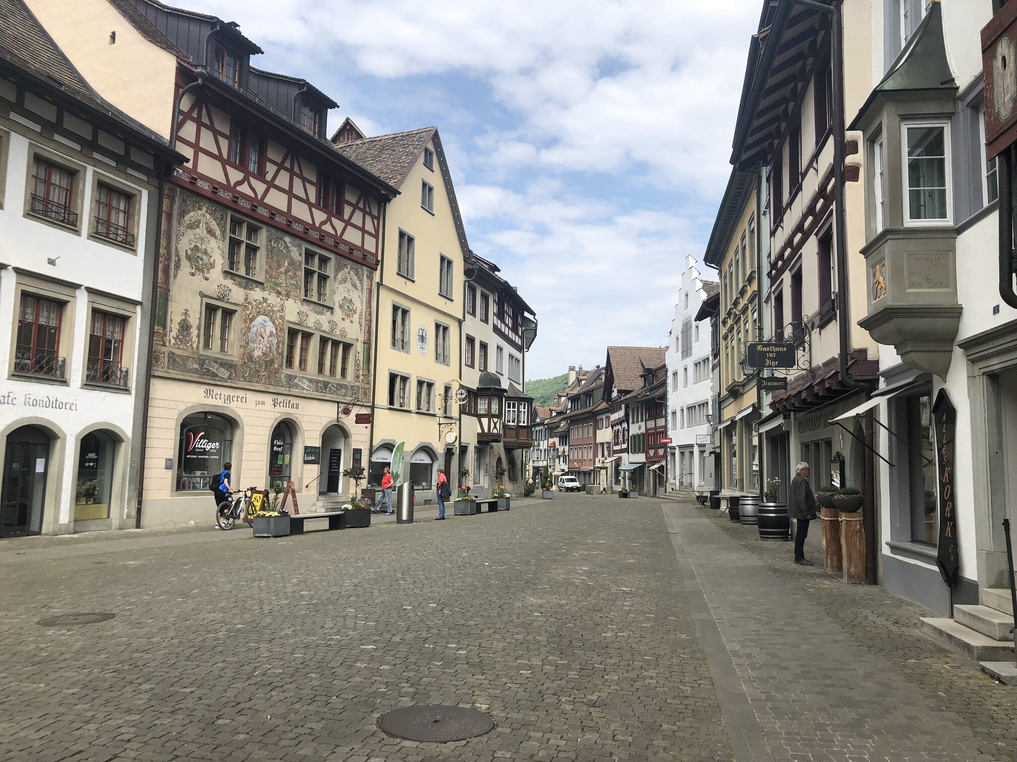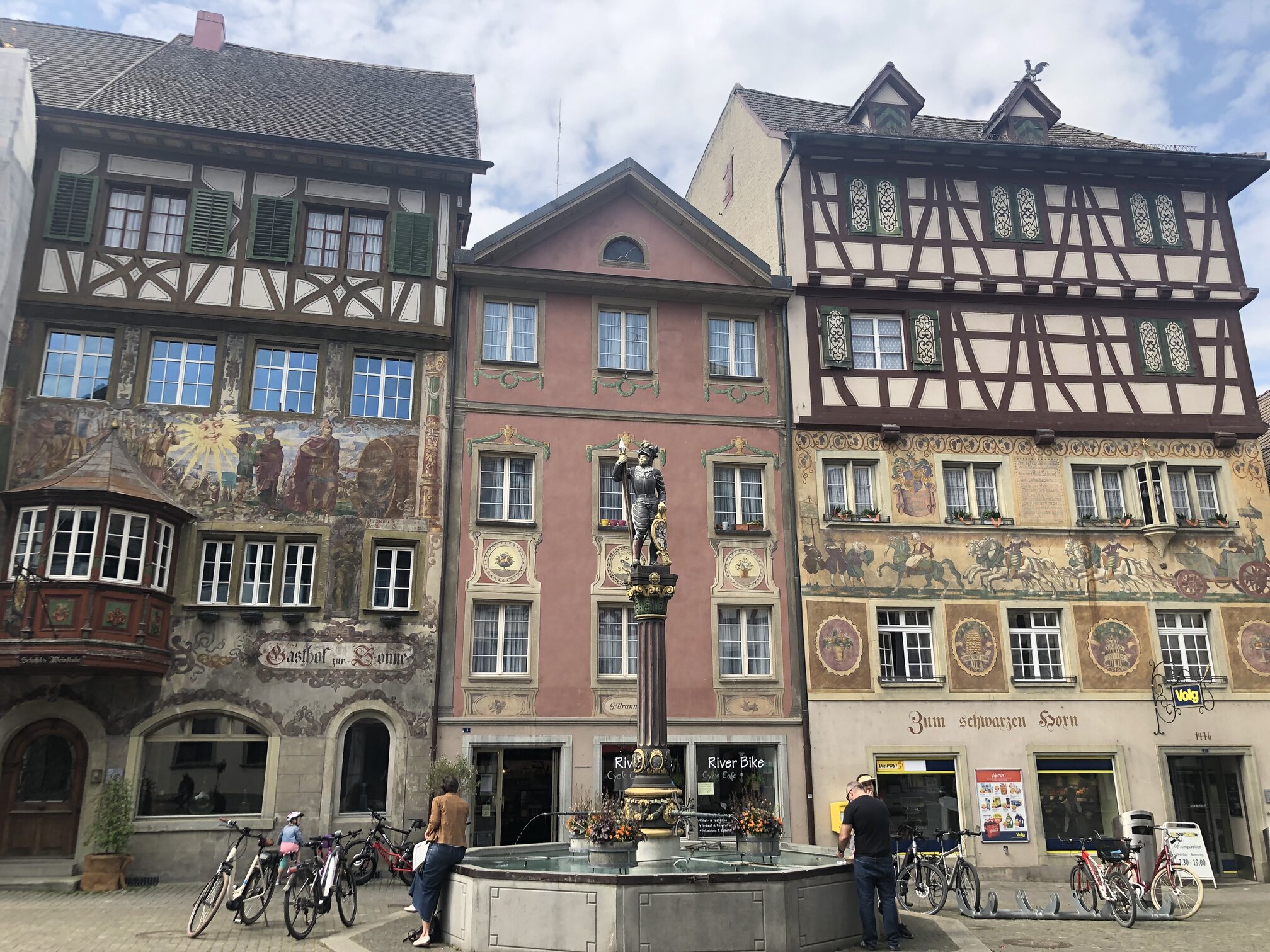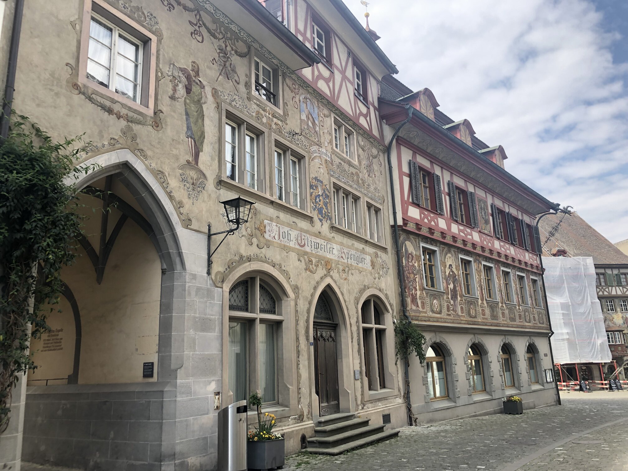 Perhaps Stein am Rhein is the most classically artistic city in Switzerland? It was hundreds of years ahead in time of the Soviet Union, when the Russians included public art in their metro systems the Swiss had already painted the walls around public town squares for two hundred years. I believe many of the paintings feature scenes from the history of the local area or the life of the first owner of the building.