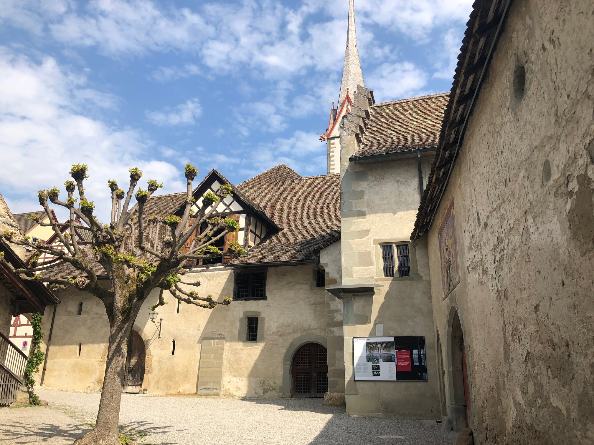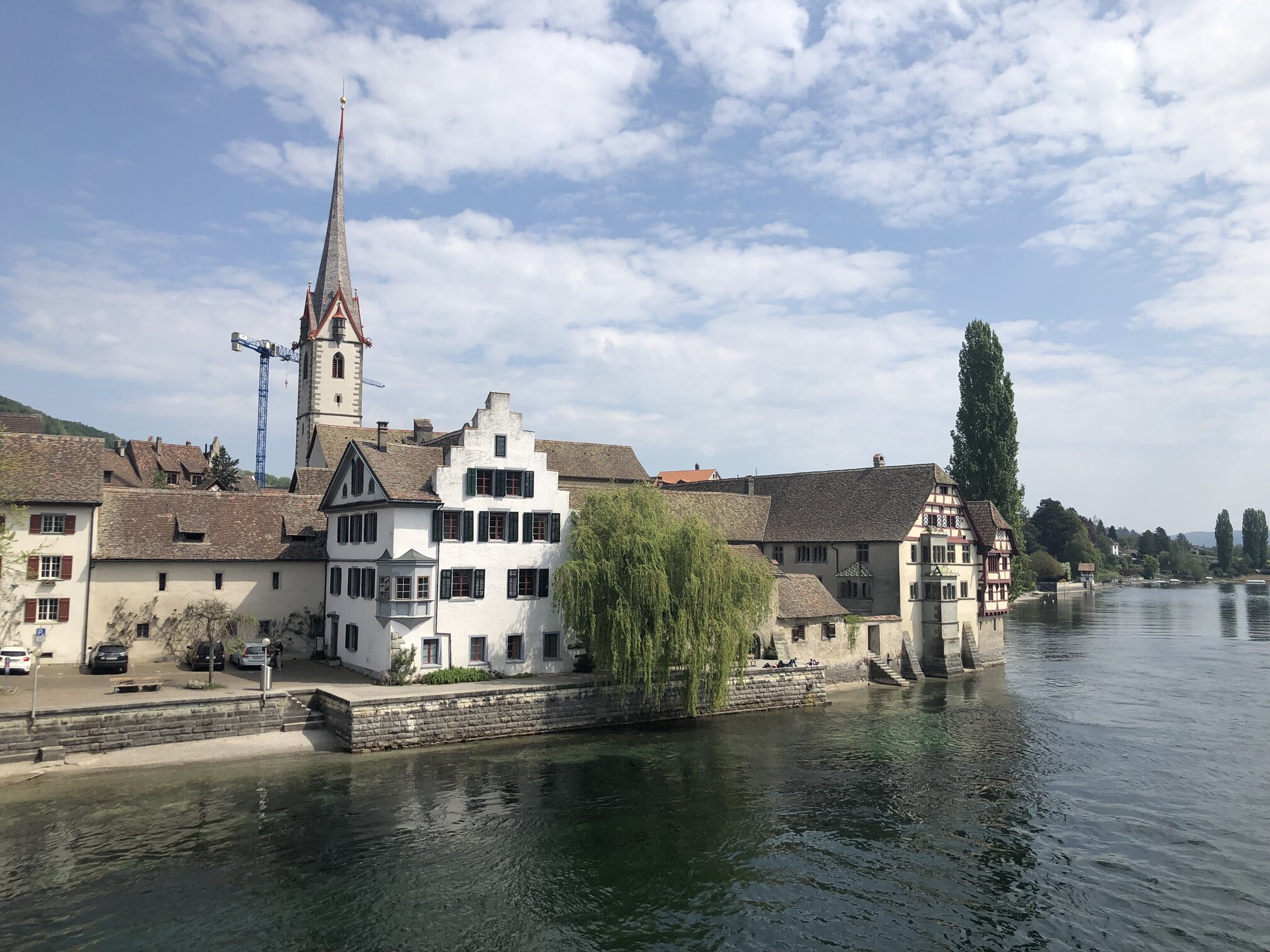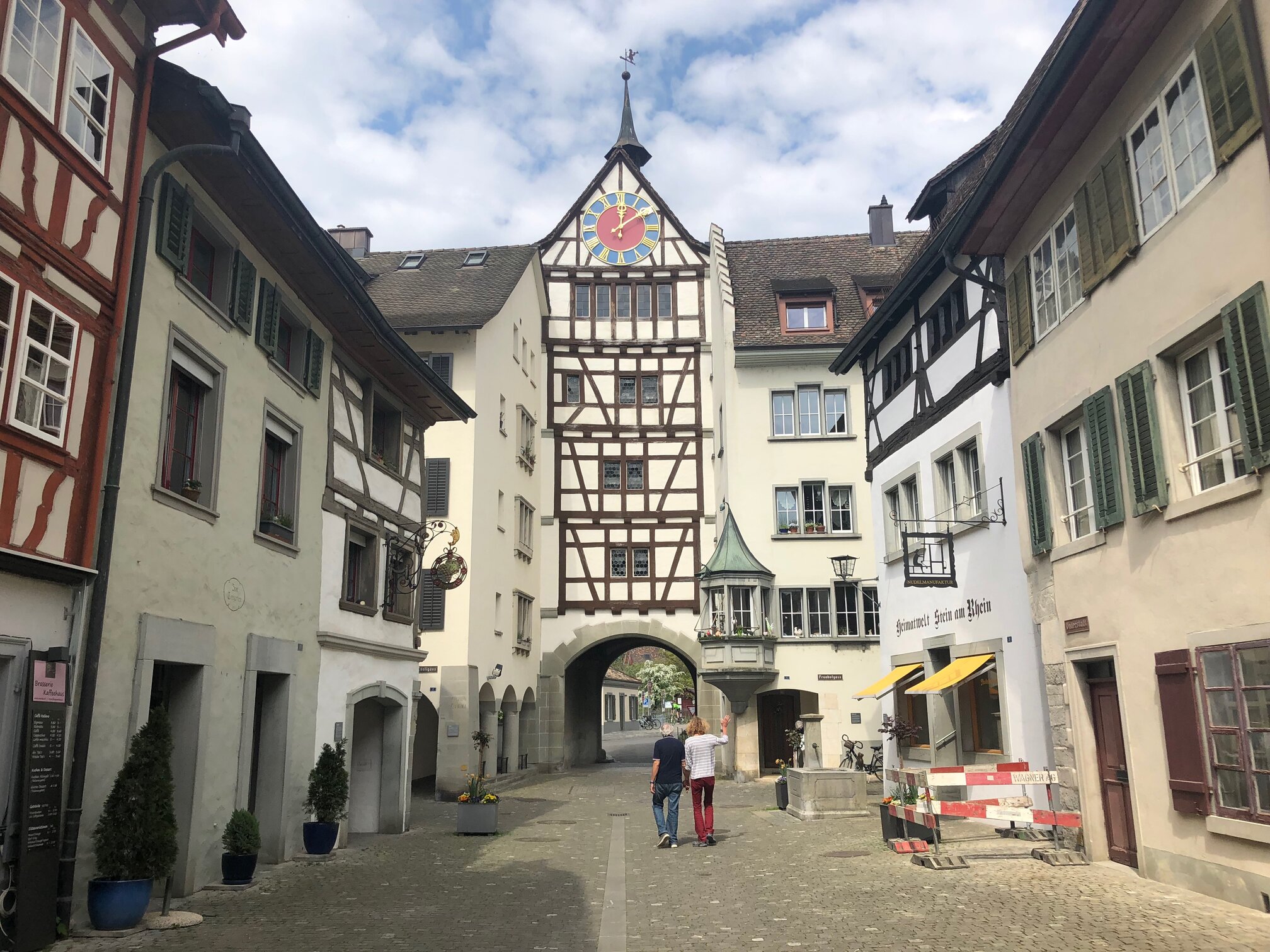 Stein am Rhein means stone by the Rhine. There aren’t too many rocky geographical features in the area but there is a lot of cobblestone that is ready to destroy the soles of your shoes. Cobblestone aside, if you look up you’ll realise that many of the buildings in the main town area are colourfully painted or covered in artistic scenes from the 17th and 18th century.
