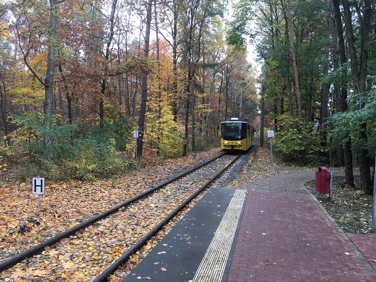 It’s called a railway because it runs on standard gauge at speeds of up to 80 km/h to suburban stops with raised platforms for boarding. In the last decade, it’s been rated more like a light railway that runs high-capacity trams. The railway joined the Berlin fare network in 2011 and ordered Berlin Flexity trams that augmented service in addition to its Soviet-era Tatra trams.