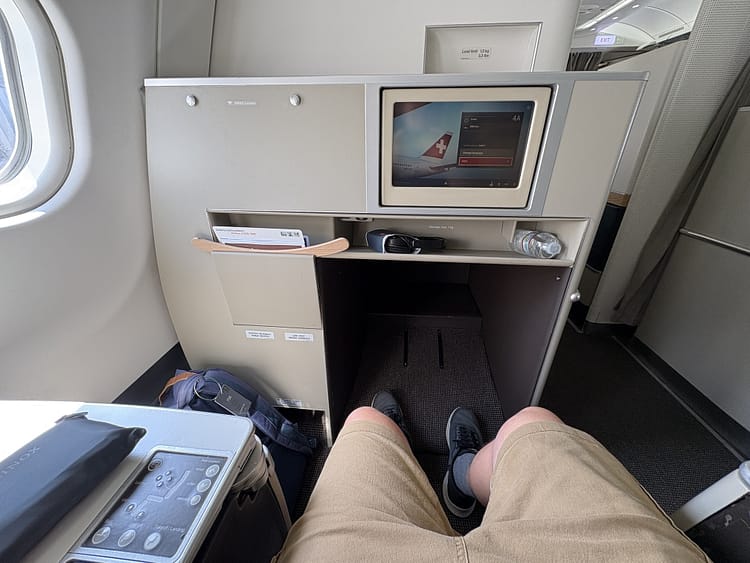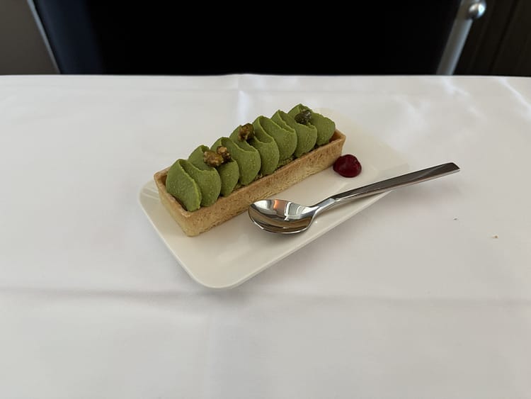 A welcome drink of Pflauder or champagne was served. Having lived in Switzerland, I naturally chose the Pflauder. Flight attendants were attentive from takeoff to landing. As soon as I woke up from my nap, I was offered ice cream and whiskey.