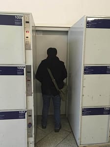 Tim trying to organize his money discreetly in Dresden Hauptbahnhof