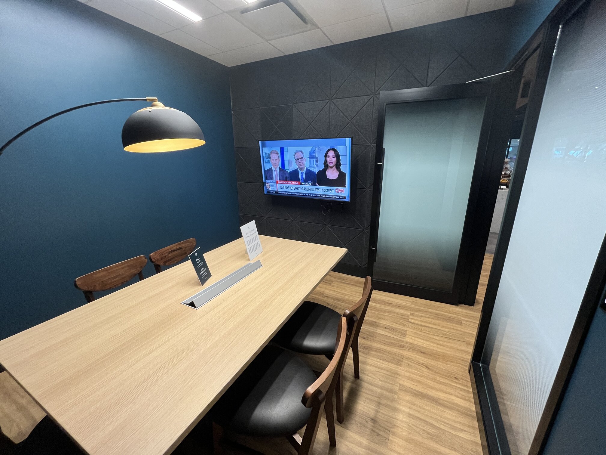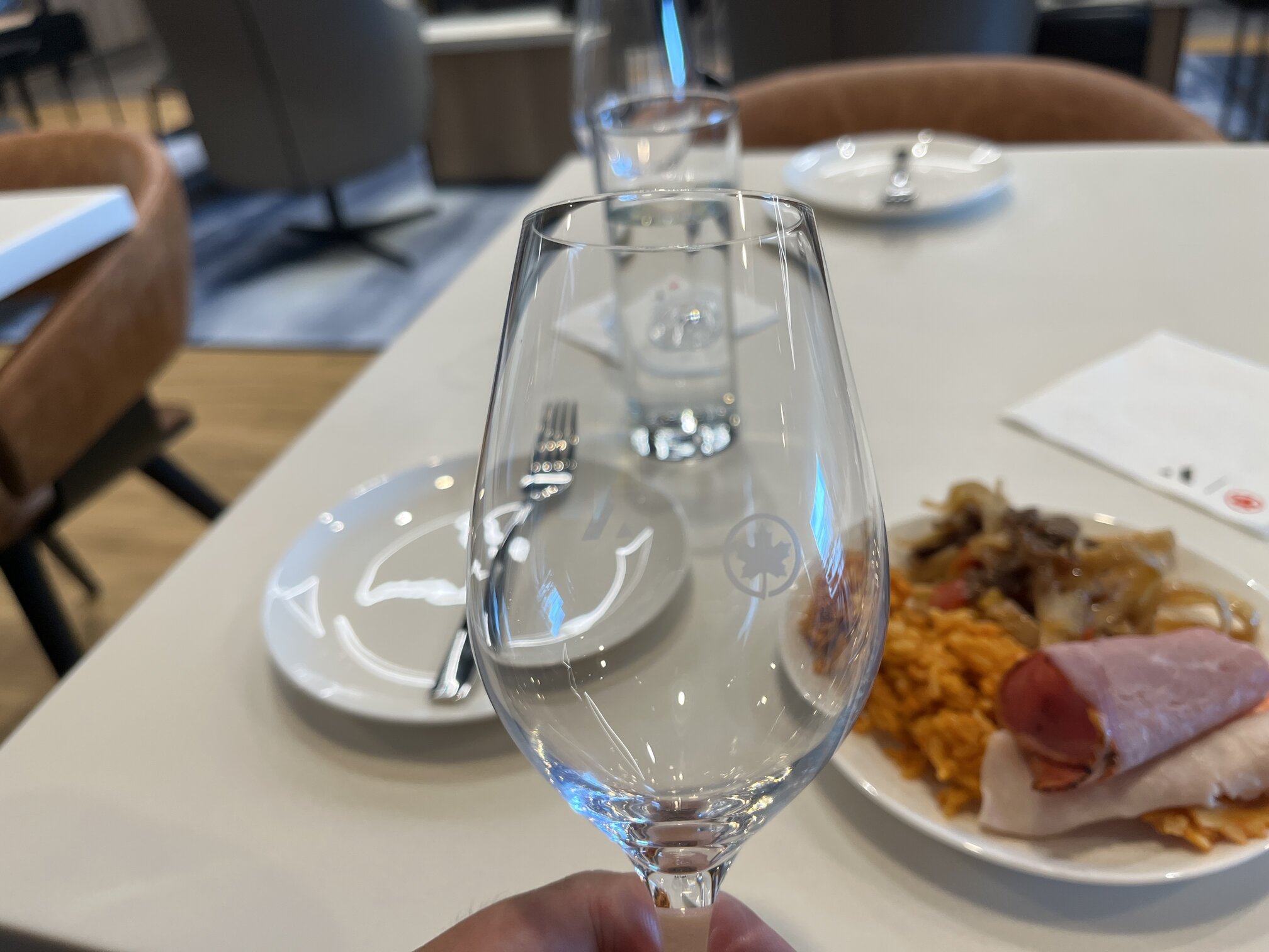 There are a variety of newspapers to read on the high-back lounge chairs, booth seating for hungry people, and desks for busy bees. I even tried out one of the two soundproof meeting rooms with a television that is available on a first-come-first-serve basis. The wine glasses have the Air Canada and Aspire logos laser-etched onto the surface and the brand-new faux leather upholstering on the seating surfaces were firm and supportive. I’ll return in a few years to see how it aged.