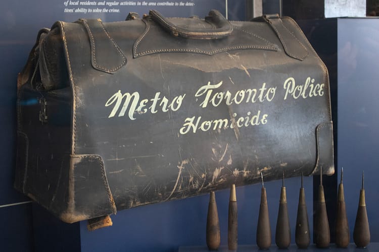 Visitors have to go through security before entering the Toronto Police Museum on the ground floor of the force’s headquarters on College Street. The dimly-lit museum is a series of three exhibition galleries connected by snaking slopes. Admission is free.