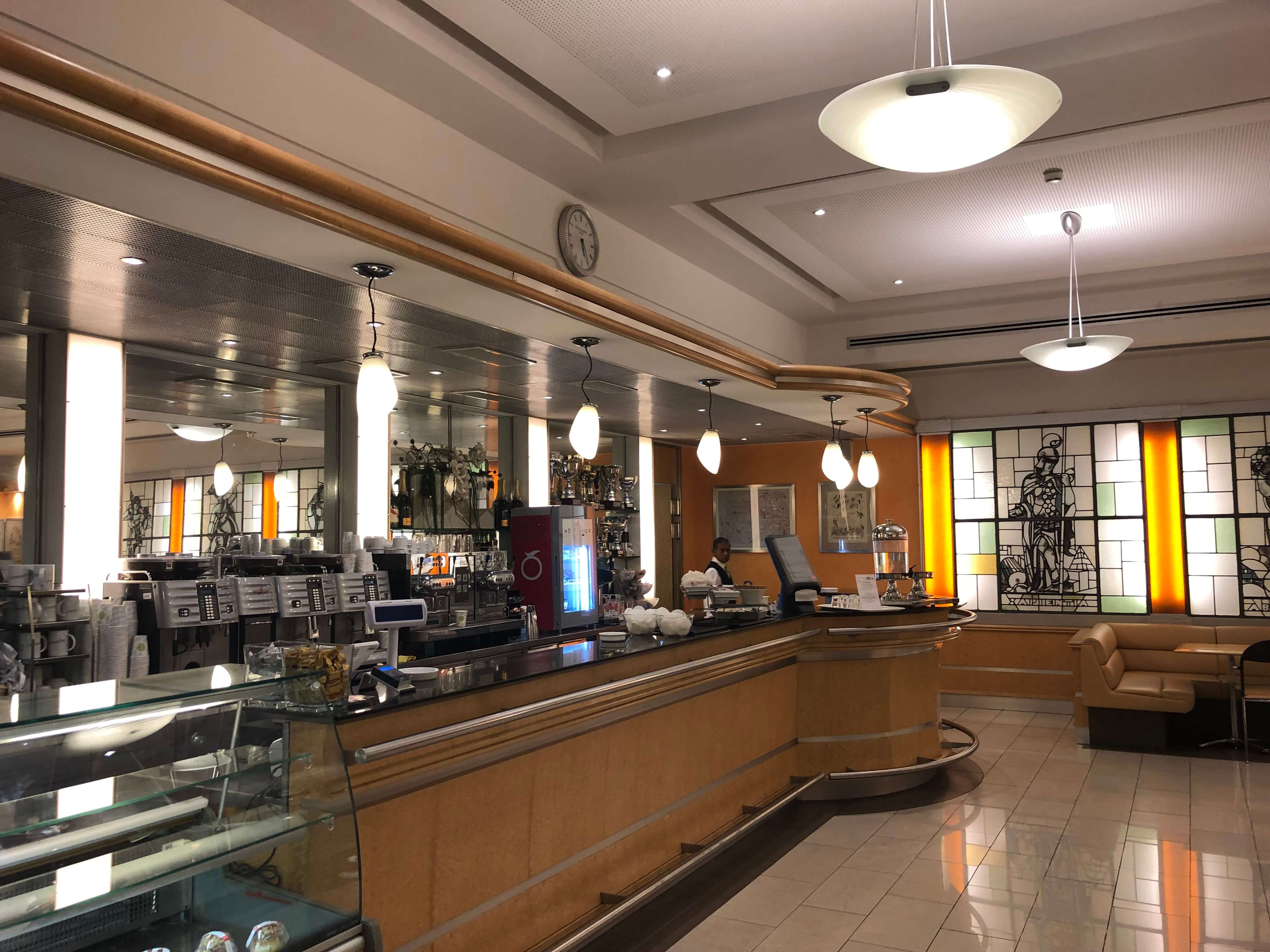 Among the building’s many dining options, my favourite is the Press Bar on the ground floor. Furnished in Art Deco style from the decade it was built, the stained glass windows and leather booths remind me of a finer era when men wore black silk hats and women wore white silk gloves. The bartender is very clever and provides speedy service for food, drinks, candies, or even just for directions.