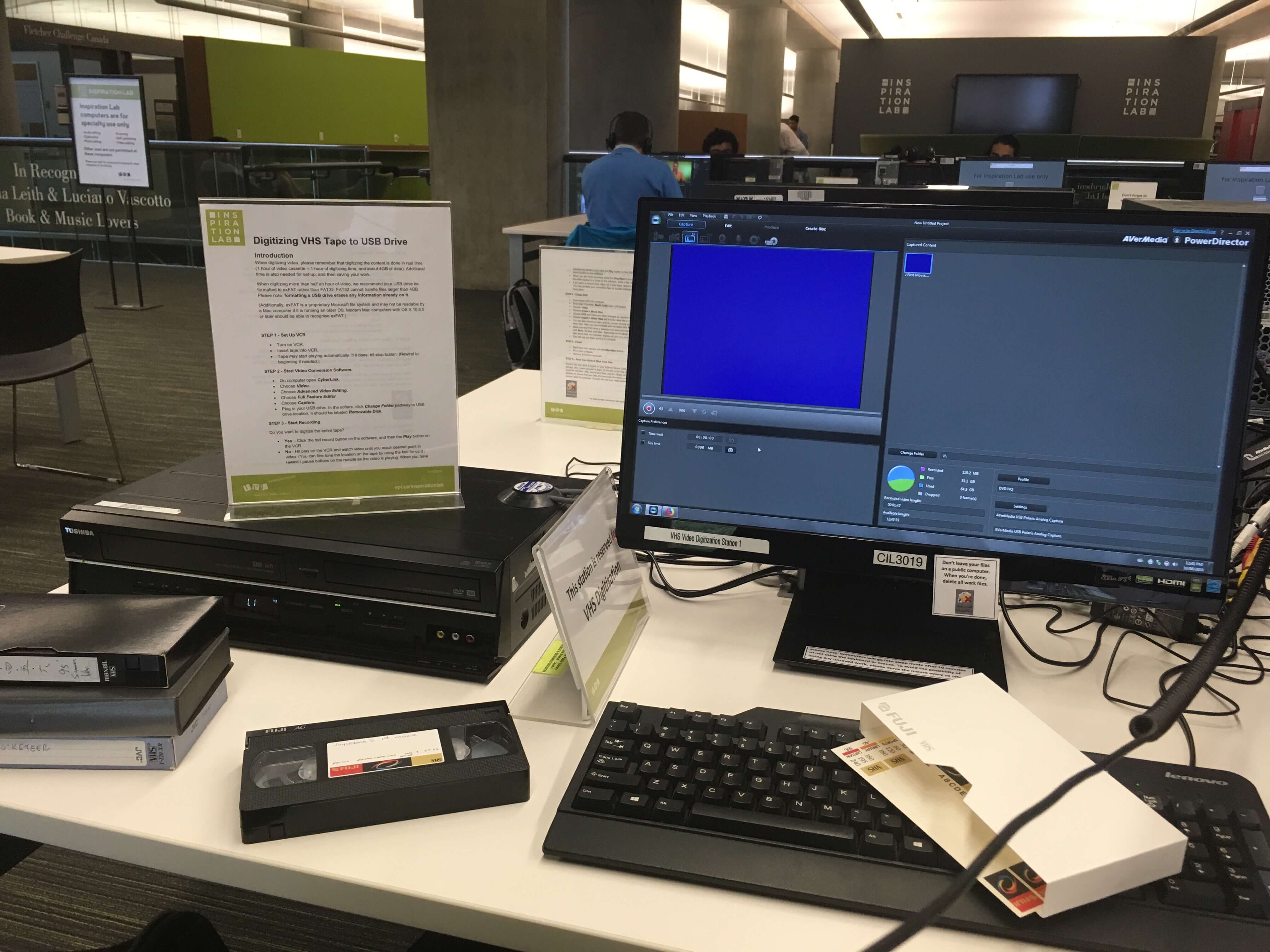 Here, you can find recording studios for video and voice, high-end computers with video- and photo-editing suites, as well as digitization stations. Users can start their own YouTube channel from scratch here with their professional cameras and recording equipment, studios even come complete with green screens and sound absorbing walls. This is the future, the democratization of content creation as well as lowering the barriers of entry to be seen by others. Those with old VHS tapes from their aunt like me can use the digitization stations to convert tapes into DVDs or mpg files onto a USB stick.