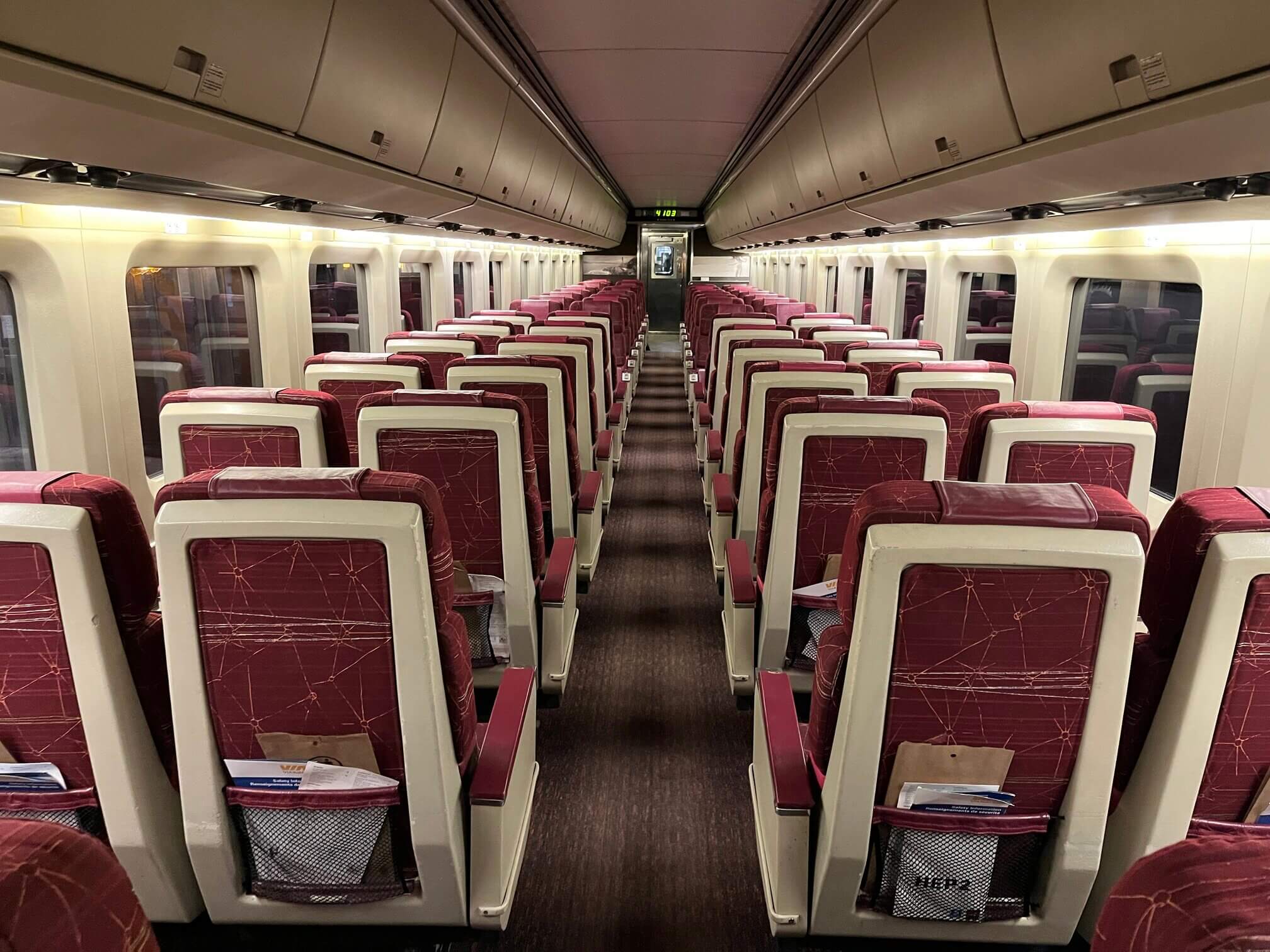 I traveled between Ottawa and Toronto, about 4.5 hours each way, but there was no buffet car. The only way to buy food and drinks was via an attendant that pushed a trolley along the corridor. While it’s a bit more convenient than walking a couple of carriages on a moving train, one of the benefits of being on a train is having the space to stretch and hang out with the people you’re traveling with—a buffet car serves that purpose. Without phone booths on the train, the buffet car is also the place to take calls without disturbing other passengers.