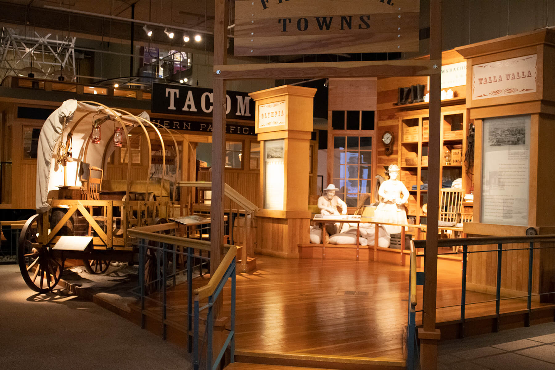 Predictably, most of the exhibits were on the population boom that followed the Oregon Trail with recreated pioneer shops and wagons. After the railroad connected the Pacific coast with the rest of America and Canada, people and goods poured in.to what was, at the time, the region of the continent with the lowest morality rate. Farming on the prairies, mining in the mountains, and fishing along the coast made it an attractive place for commerce.