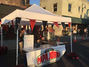 Just like my luck in Chicago, I was just in time for the summer festival where there was a live band, a beer garden, plenty of food, and a cheerleading squad selling tickets to a high school ball game. I had a slice of Papa John’s with a bottle of Crush Orange while admiring the sunset behind a water tower and a backdrop of dusty barren hills. Does it get more American than that?