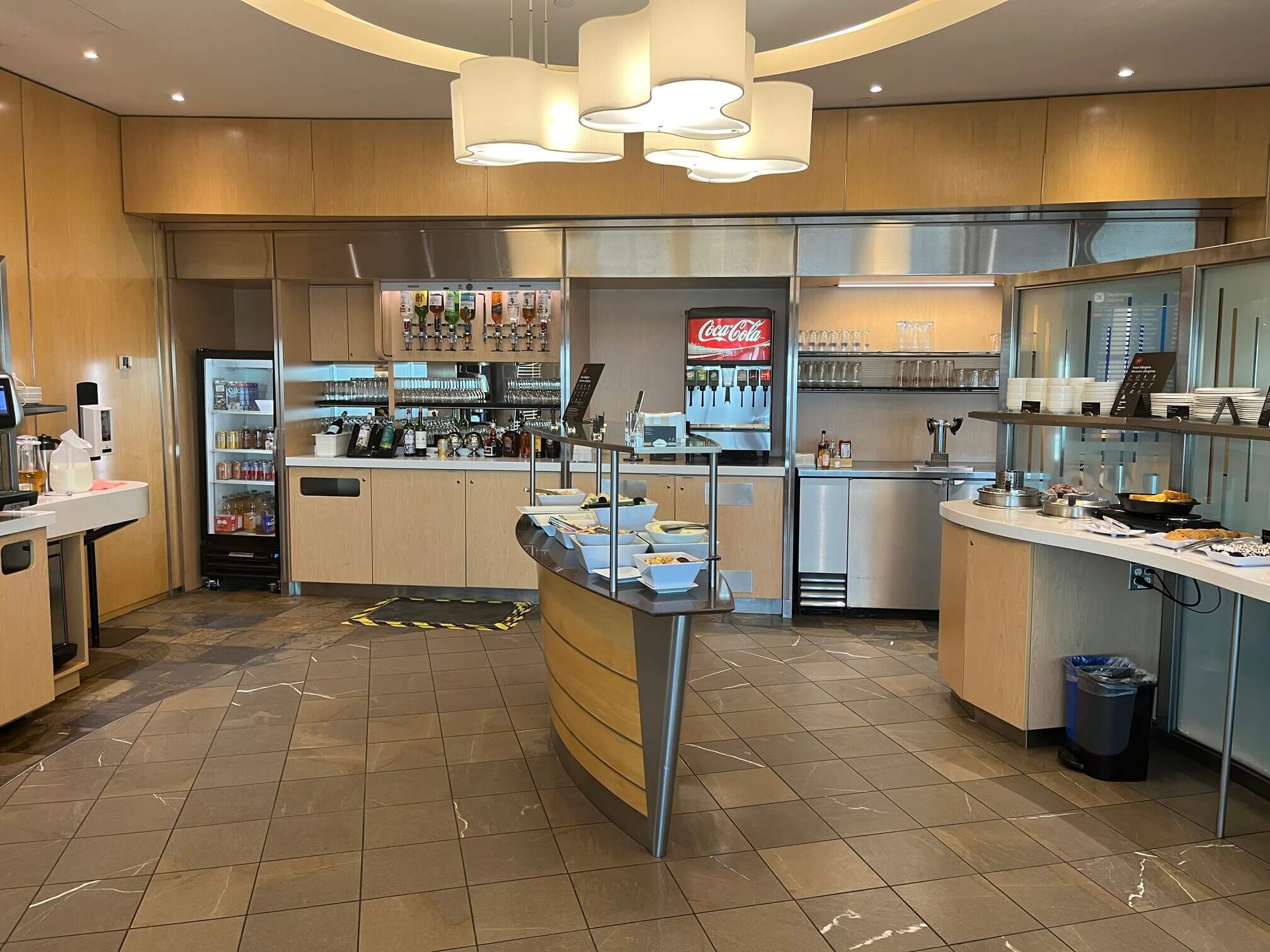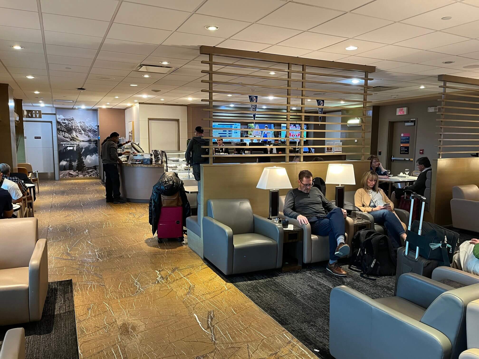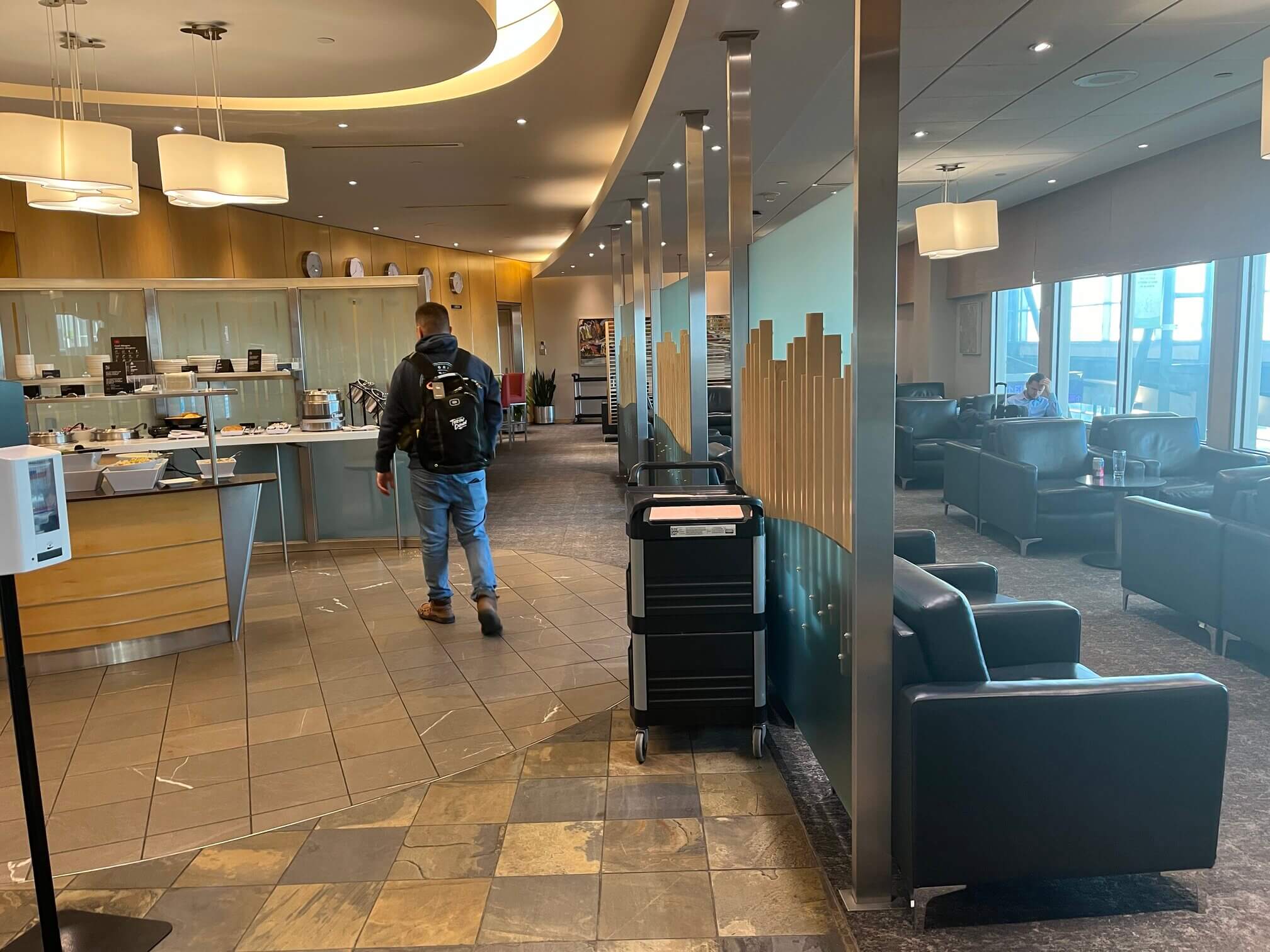 Much quieter and larger than the Plaza Premium Lounge, the full self-serve bar is complimentary and the toilets are generally cleaner, too. Still, this location was smaller than Maple Leaf Lounges in other Canadian airports, so there was only one hot food option, two soups and a salad bar. Usually, other lounges would have two meats, one vegetable and one carbohydrate as well.
