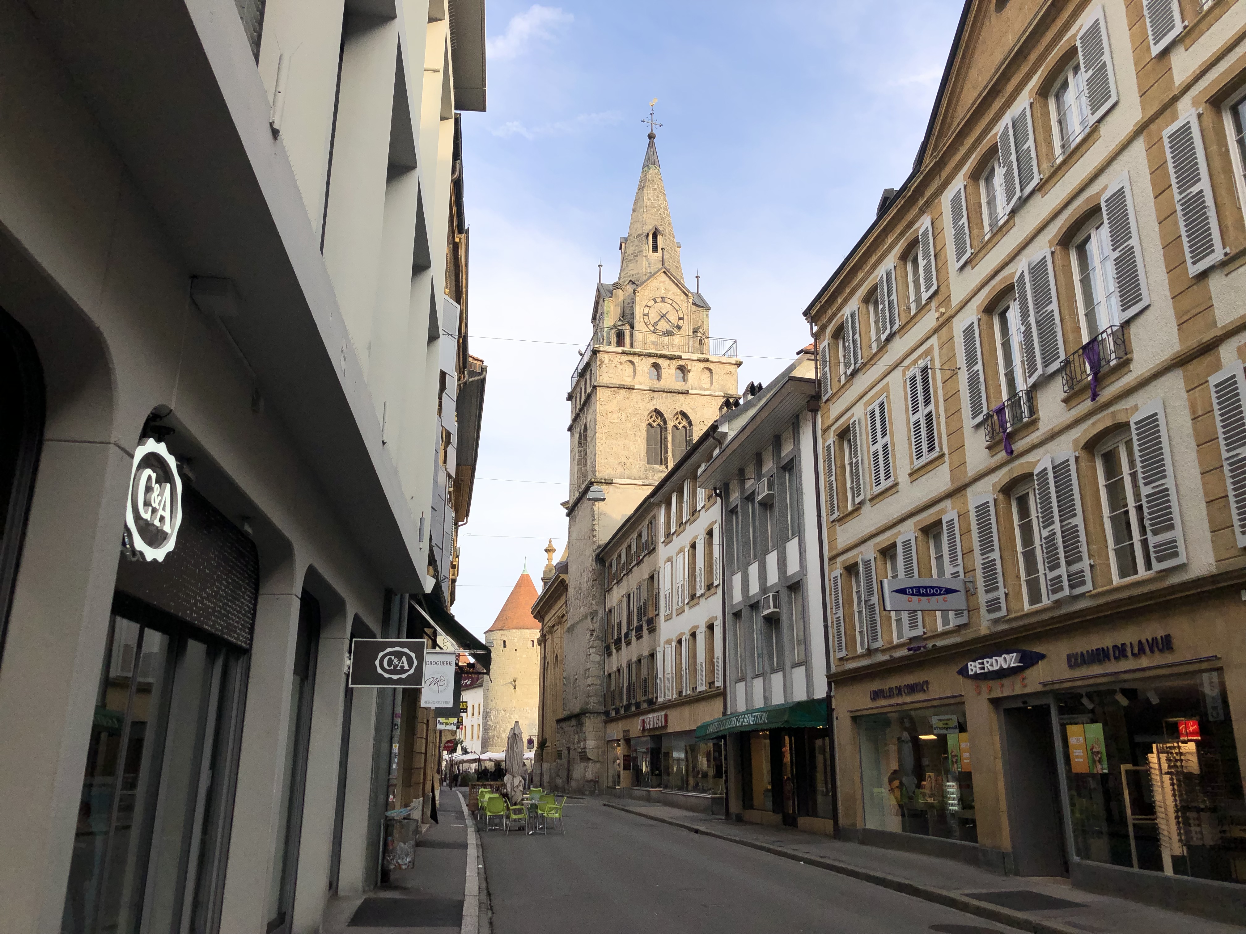 If you are from the US, you’ll recognise the decaying railway bridges, gas station restaurants, and dirty dried up rivers in the suburbs. Once you get beyond all the ugly bits, a view of the Neuchätel Lake will show up in front of you. Feel free to enjoy the view from a park that is a 20-minute walk from the center of town and sit next to the binoculars man.