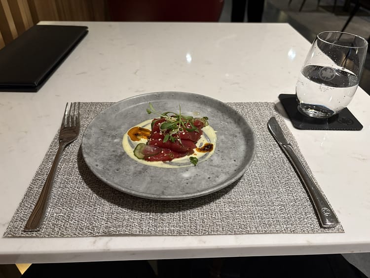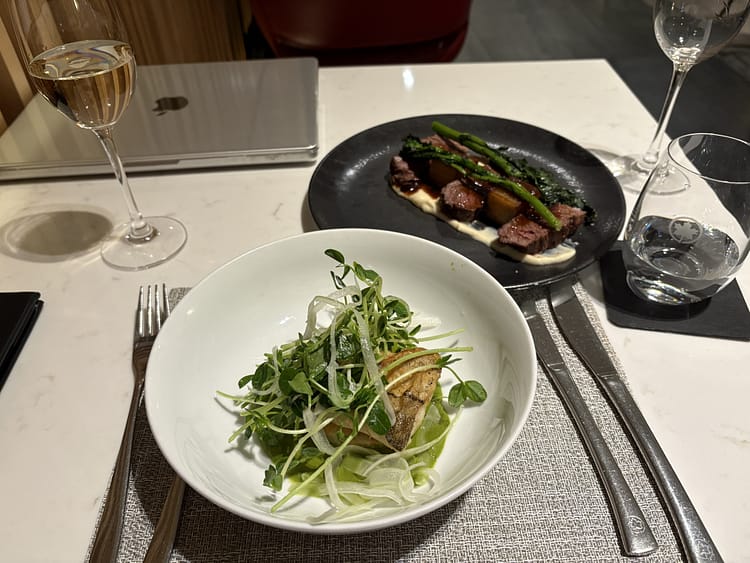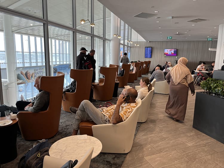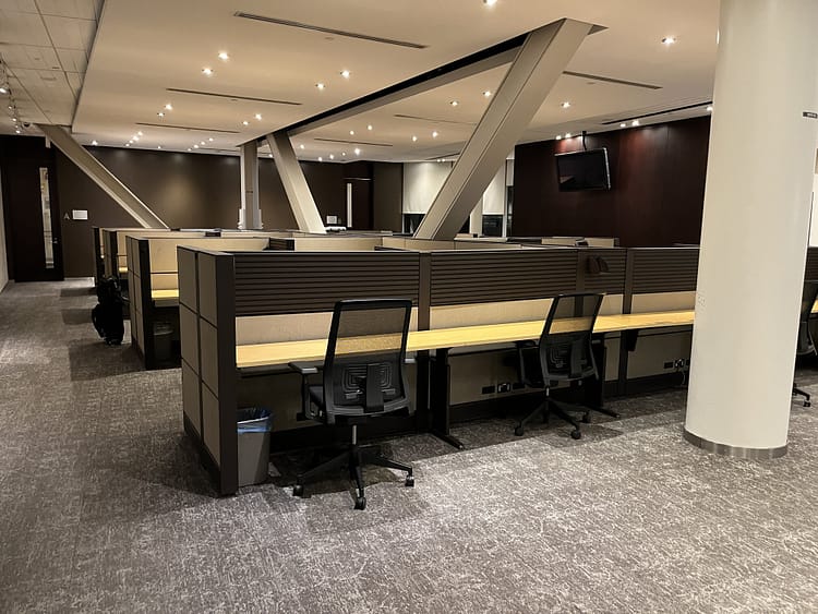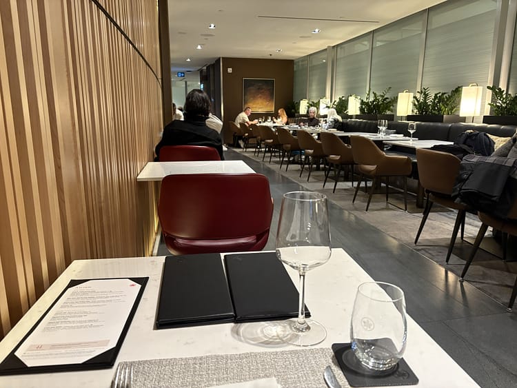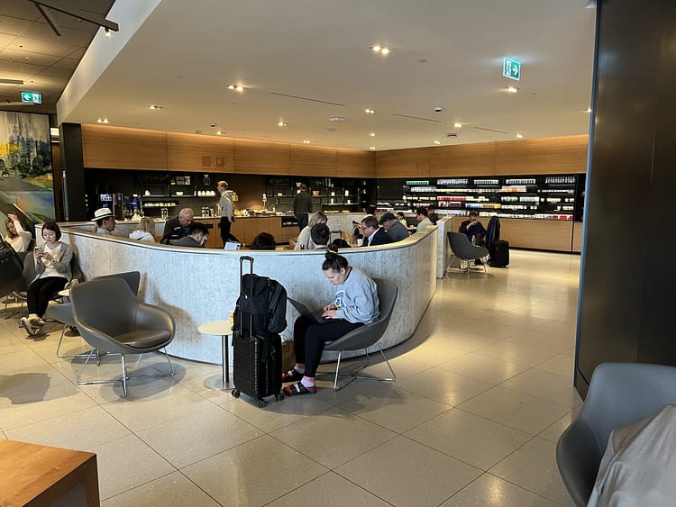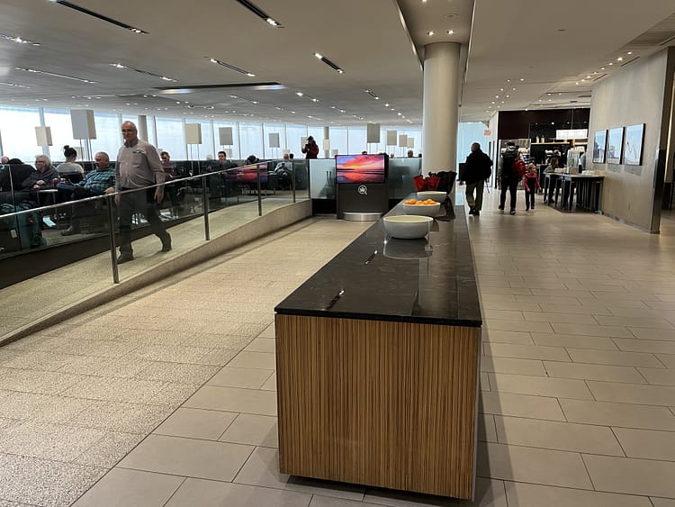 Air Canada’s flagship lounge at its hub airport was a slight disappointment. While it wasn’t as stunning as I had expected it to be, it was a comfortable environment with access only granted to those traveling on business or premium, with 50K plus status or a black Aeroplan credit card. The eating area is a bit noisy, but the cubicles in the business area are nice and quiet with softwood tables, noise absorbing materials, and plenty of charge points.