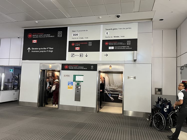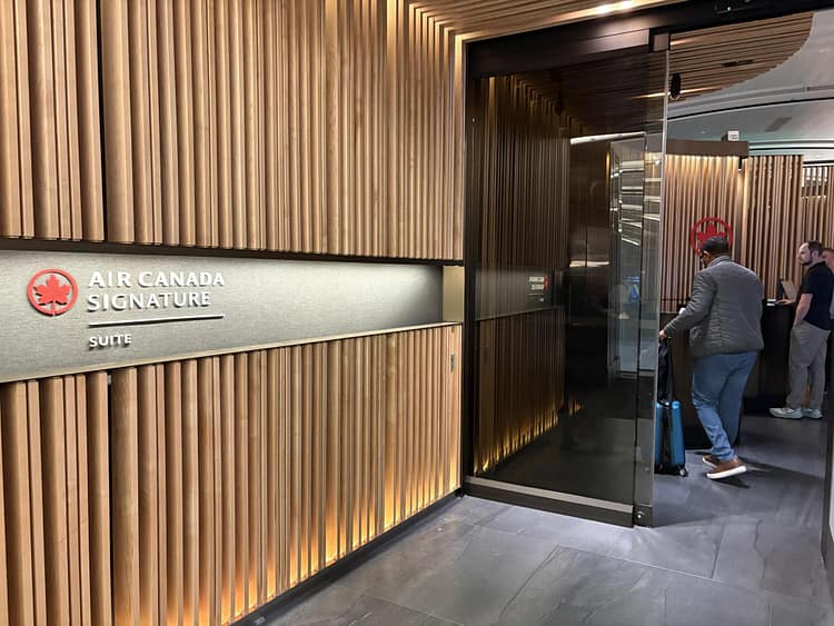 This is the only lounge on departure level. It’s a small, cozy, quiet working area mostly used by business travellers to catch up on work for a short while before rushing to their gate. It’s close to where the planes are and so it hardly has a view at all. Only those traveling on business or premium, with 50K plus status or a black Aeroplan credit card. Passengers walk in through a wooden cocoon making an excellent transition from the noisy terminal to the serene lounge.